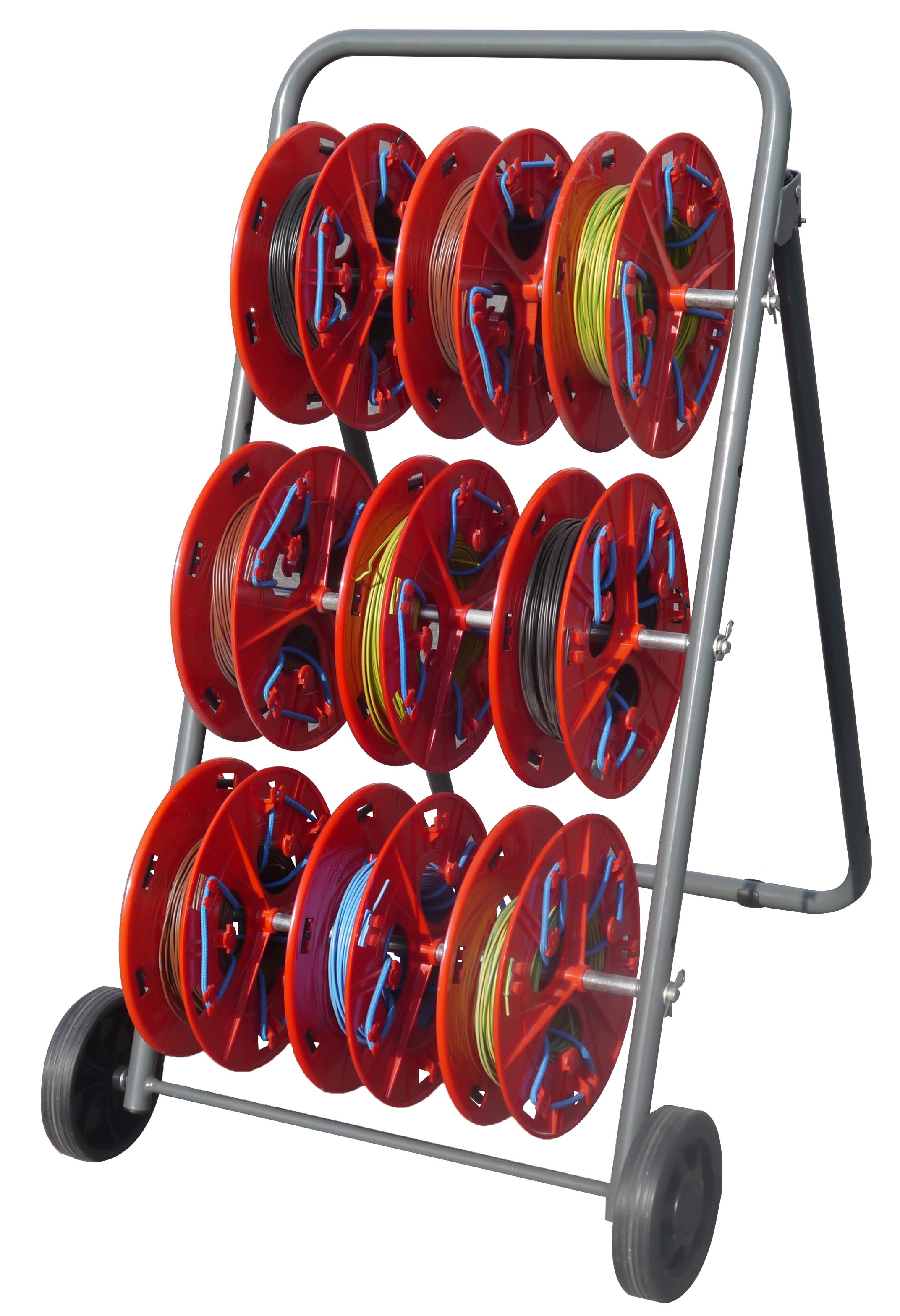 NOVOQUAD : chariot-dévidoir avec bobines à sandows (pour 9 couronnes de fils)