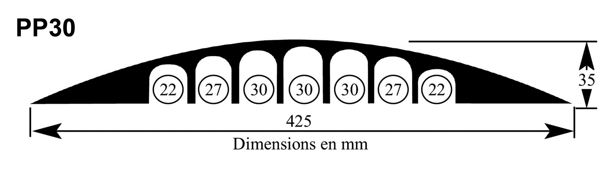Cable Equipements - PONT PIETONS 30-7 : passage de cable Pietons - 0,80m - NOIR - 7 canaux - PP30G80