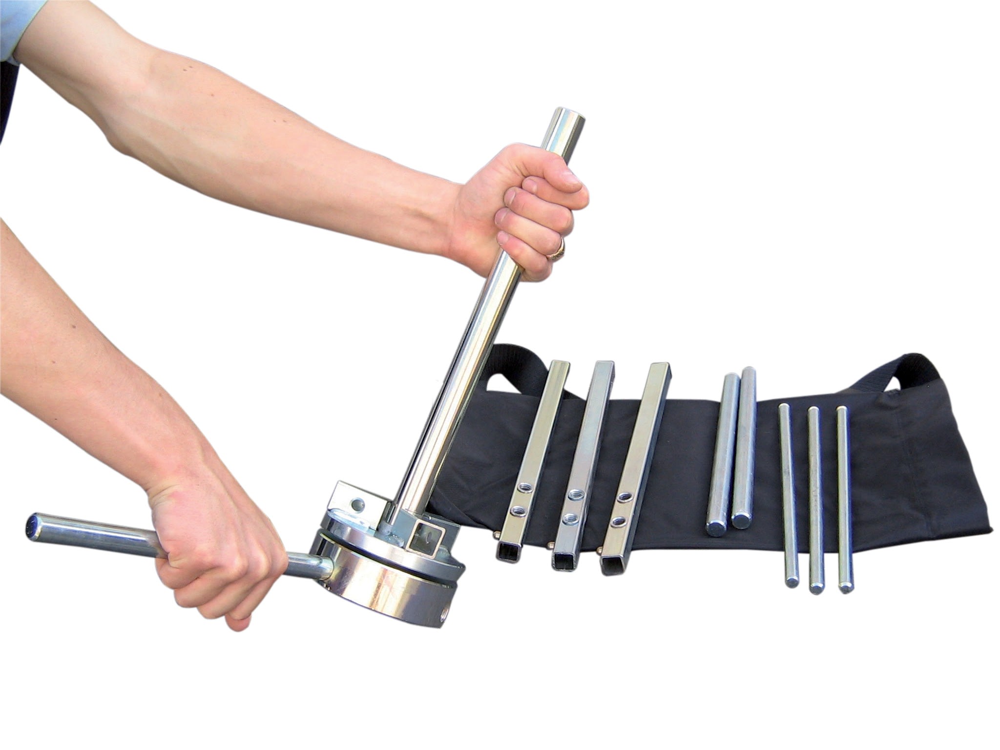 SATELLITE : dérouleur démontable pour couronne de câble ou de gaine, Ømaxi 750mmEntièrement démontable (base lestée, 3 pieds, 3 bras et 3 broches verticales) -Livré avec une sacoche à bandoulière qui se porte sur l'épaule -