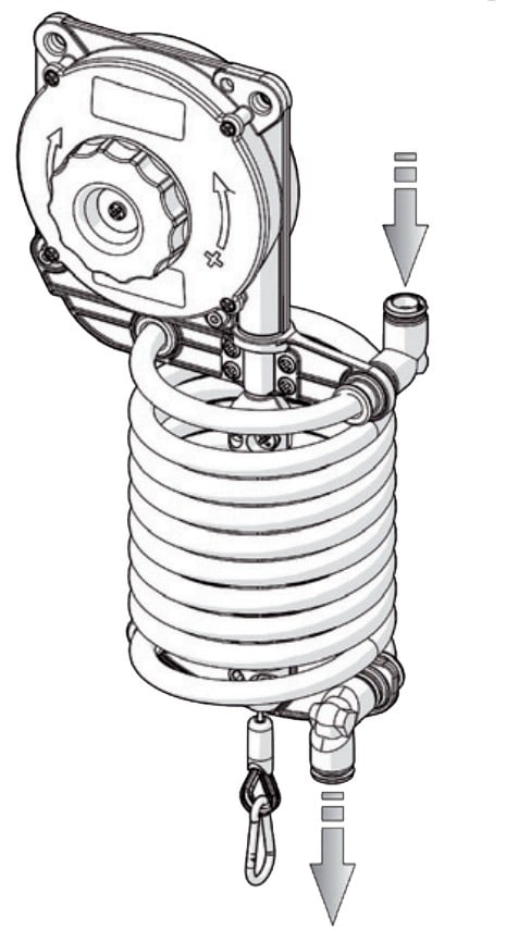 Tuyau spiralé (PA12) 8x10 pour équilibreur - Convient pour les modèlesEQ20, EQ21, EQ22, EQ30 et EQ31 - Livré avec 1 mètre de tuyausupplémentaire pour la connexion du réseau d'air comprimé -