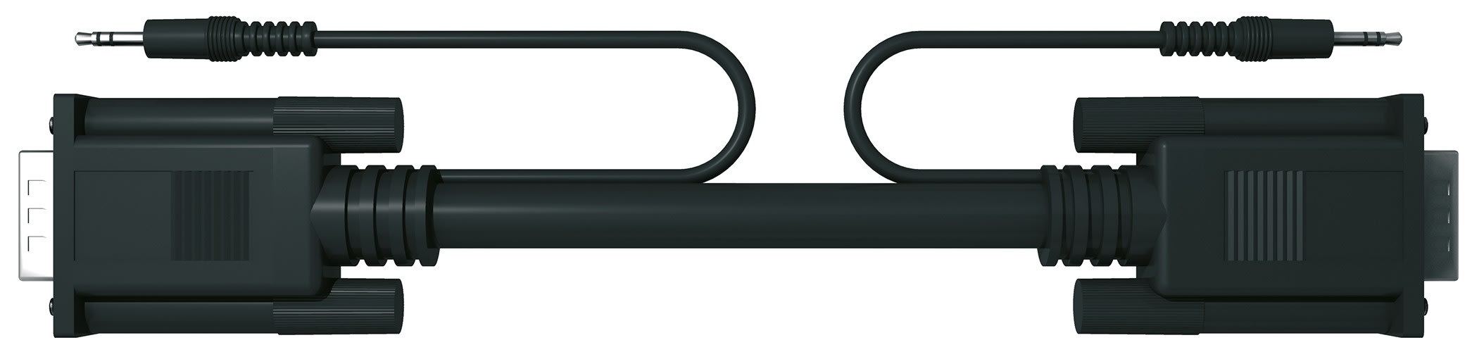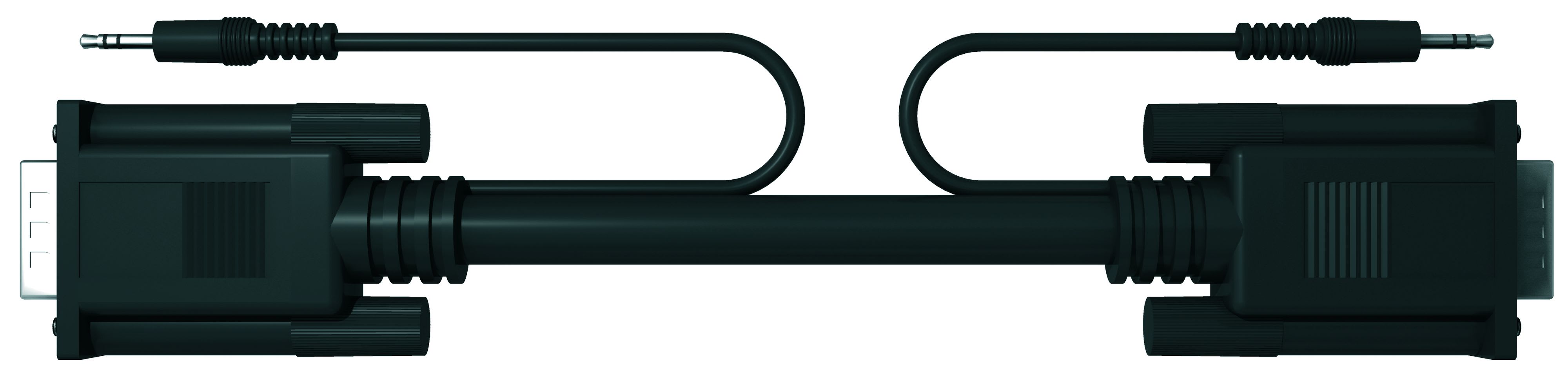 Le cordon FULLVGA + audio d'une longueur de 10 mètres est composé d'un câble comprenant 5 câbles coaxiaux et de conducteurs pour gérér les données d'informations et 2 cordons mini Jack 3.50 mm de 30 cm et 60 cm, les 2 connecteurs mâles de chaque côté sont moulés et équipés d'une ferrite. La longueur de 60 cm permet de se connecter sur un PC portable sur son entrée mini Jack et VGA, même dans le cas ou les 2 ports sont très éloignés.
