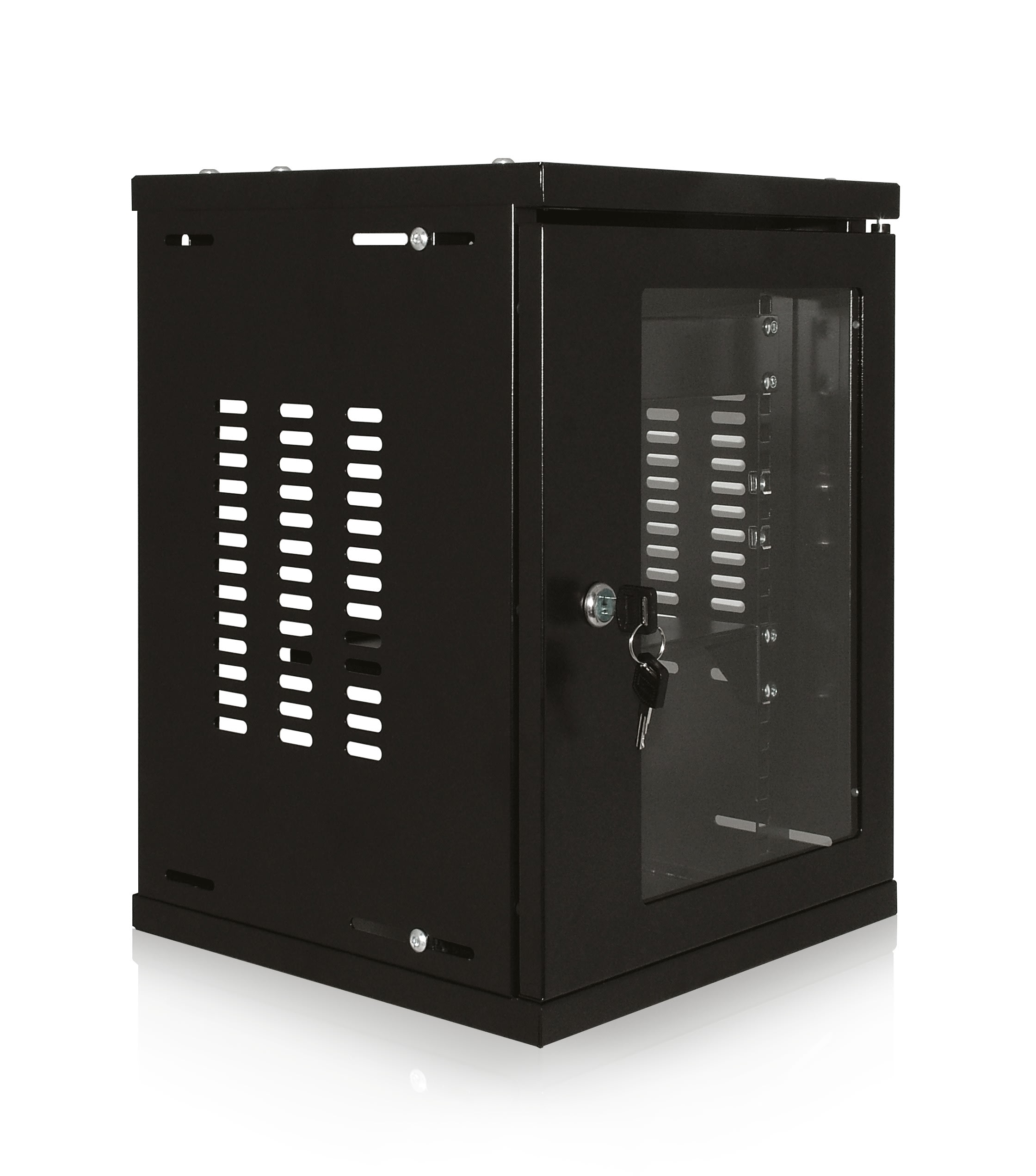 Coffret 10" Vide Noir Réglettes Modulables Avant/Arrière Ouverture Passe Câbles Dessus/Dessous Degré De Protection Ip 20 Norme Etsi Hauteur 8U Charge Maximum Supportée 50 Kg Fermeture À Clé