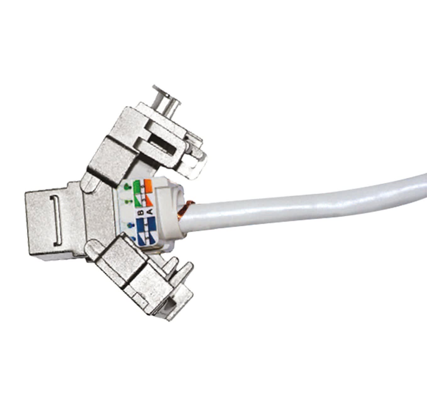 Embase Rj45 Cat.6A Sftp - 10Gb Corps Zamac. Notre Gamme D?Embases Rj45 Est Équipée D?Un Système De Montage Et De Sertissage Du Câble Sans Outil.