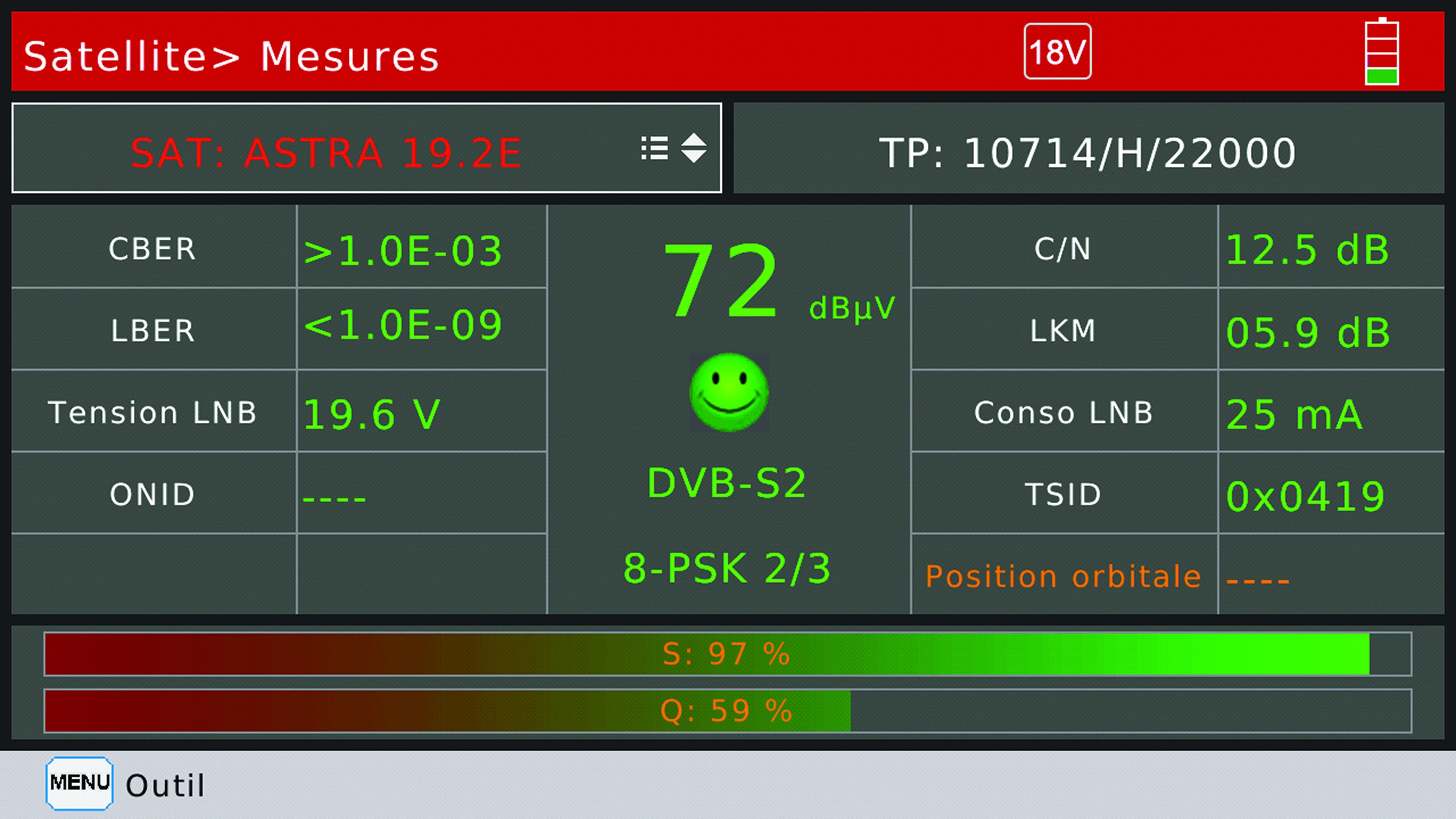 Mesureur Ecran 5" Ter + Sat + Cable + Hevc H.265 Avec Alim 220V & Cordon Cigare
