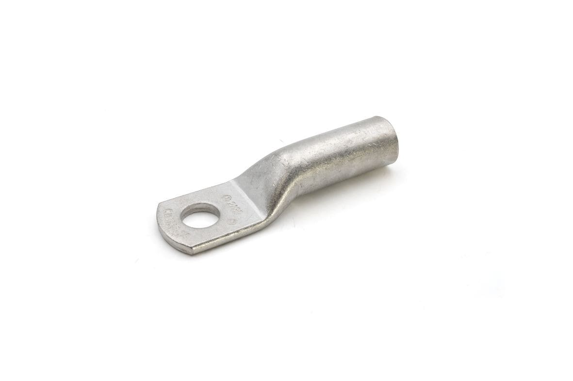 COSSES D’APPLICATIONS SPECIALES 2A-Mpour câble en cuivreLes cosses de la série 2A-M sont conçues pour un usage intensif, pour la mise à la terre des structures et des équipements intérieurs et extérieurs et pour les applications moyenne tension jusqu'à 35 kV. Les cosses de la série 2A-M sont réalisées à partir d’un tube en cuivre électrolytique d’une pureté supérieure à99,9 %. Un recuit garantit une ductilité optimale, état nécessaire pour que le métal accepte la déformation sévère subie au moment du sertissage et augmente considérablement le nombre de points de contact de la plage, au serrage. Ce recuit joue également un rôle important en présence de vibrations, évitant au maximum les fissures internes du métal ou les cassures. L’étamage électrolytique garantit une excellente résistance à la corrosion. La longueur du fût permet d’effectuer deux poinçonnages. L’absence de trou de visite permet d’éviter toute infiltration d’humidité ou autres agents atmosphériques nocifs. L’insertion du câble est facilitée par un accès du fût chanfreiné.Certificats UNI EN 13600:2003 Caractéristiques techniques Matériel (Corps): Cu-OF CW008A