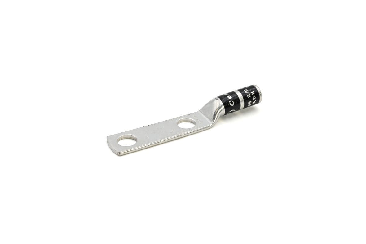 Cosses colorées à deux trous et fût long CL-Dpour conducteurs en cuivreLes cosses de la série CL-D sont fabriquées en tube de cuivre électrolytique Cu-OF CW008A conforme à la norme UNI EN 13600.Un recuit garantit une ductilité optimale, état nécessaire pour que le métal accepte la déformation sévère subie au moment du sertissage, et augmente considérablement le nombre des points de contact de la plage, au serrage.Le recuit joue également un rôle important en présence de vibrations, évitant au maximum, les fissures internes du métal ou les cassures.L’étamage électrolytique garantit une excellente résistance à la corrosion, tout en minimisant la résistance du contact électrique au droit de la plage.L’insertion du câble est facilitée par une sortie de fût chanfreinée. Sur chaque cosse figure•le logo du fabricant et la référence sur le catalogue Cembre •nature et section du conducteur (AWG)•code de la matrice de sertissage•code couleur UL Listing valide autant aux USA qu’u Canada selon le Standard UL 486A-486B jusqu’à 35 kV.Certificats 2011/65/EU Caractéristiques techniques Matériel (Corps)Cuivre ETP étamé électrolytiquementMatériel (Plage)Cuivre ETP étamé électrolytiquement