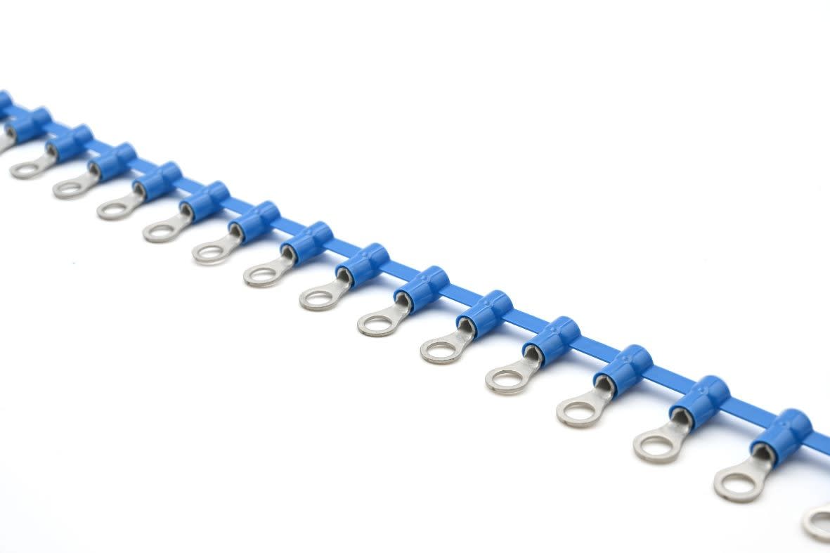 Cosse préisolée ronde bleue (1,5 à 2,5 mm²) - Diam. 8 mm en bande