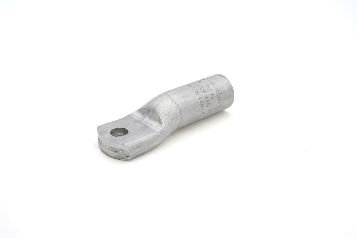 COSSES ALUMINIUM AA-Mpour câble aluminiumLes cosses de la série AA-M sont réalisées à partir d’un tube en aluminium EN AW-1050A conforme à la norme UNI EN 573-3 d’une pureté égale ou supérieure à 99,5 %. Elles sont conçues pour accepter tout type de câble aluminium. Les câbles sectoraux doivent être mis au rond préalablement. Une graisse est déposée à l’intérieur du fût, afin d’éviter les éventuelles oxydations de l’aluminium. Un mastic est fourni pour combler l’empreinte des poinçons, dans le cas d’une “post-isolation” de la cosse, afin d’éliminer toute poche d’air sous l’isolant.Certificats EN 61238-1 2003-08 2011/65/EU Caractéristiques techniques Forme dimensionnelle : RondeMatériel (Corps) : AluminiumMatériel (Plage) : Aluminium