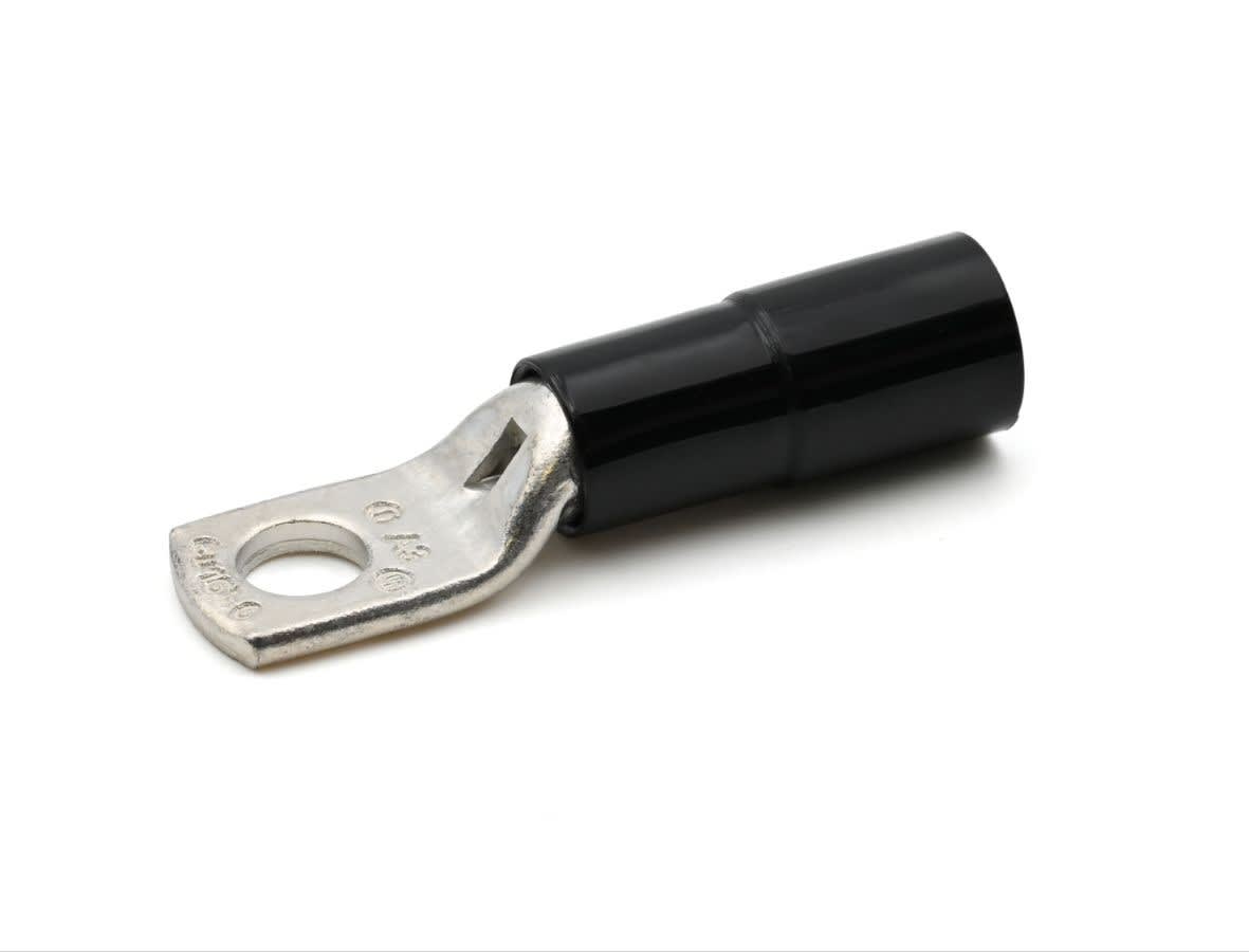 COSSES TUBULAIRES PREISOLEES NYLON ANE-Mpour câble souple en cuivreLes cosses de la série ANE-M sont réalisées avec un tube en cuivre électrolytique, puis étamées électrolytiquement. La jupe isolante Nylon, possède à l’intérieur un cône d’entrée, facilitant la mise en place du conducteur. Cette jupe de couleur noire, supprime la nécessité d’une “post-isolation” après sertissage, assure une bonne protection et un maintien du câble, à la sortie du fût. L’outillage spécifique à ces cosses est seul habilité à garantir la qualité de la connexion, tant sur le plan électrique que mécanique. Les cosses ANE-M sont particulièrement destinées à raccorder des conducteurs souples. Les cosses tubulaires préisolées Nylon existent aussi dans les 3 couleurs bleu, rouge, marron du 10 au 70 mm2. Les cosses réf. A2, A3, A5 peuvent aussi être utilisées sur des conducteurs rigides.Les cosses de la série ANE-M sont fabriquées en tube de cuivre électrolytique Cu-OF CW008A conforme à la norme UNI EN 13600.Certificats CEI 20-28 MIL T79286 VG 88710 NFC 20-130 2011/65/EU Caractéristiques techniques Min températures d'utilisation : -20 °CMax températures d'utilisation : 115 °CMax températures d'utilisation (courtes périodes) : 130 °CMatériel (Corps) : Cuivre ETP etarnés électrolytiquementMatériel (Partiellement renforcés) : Polyamide PA6.6