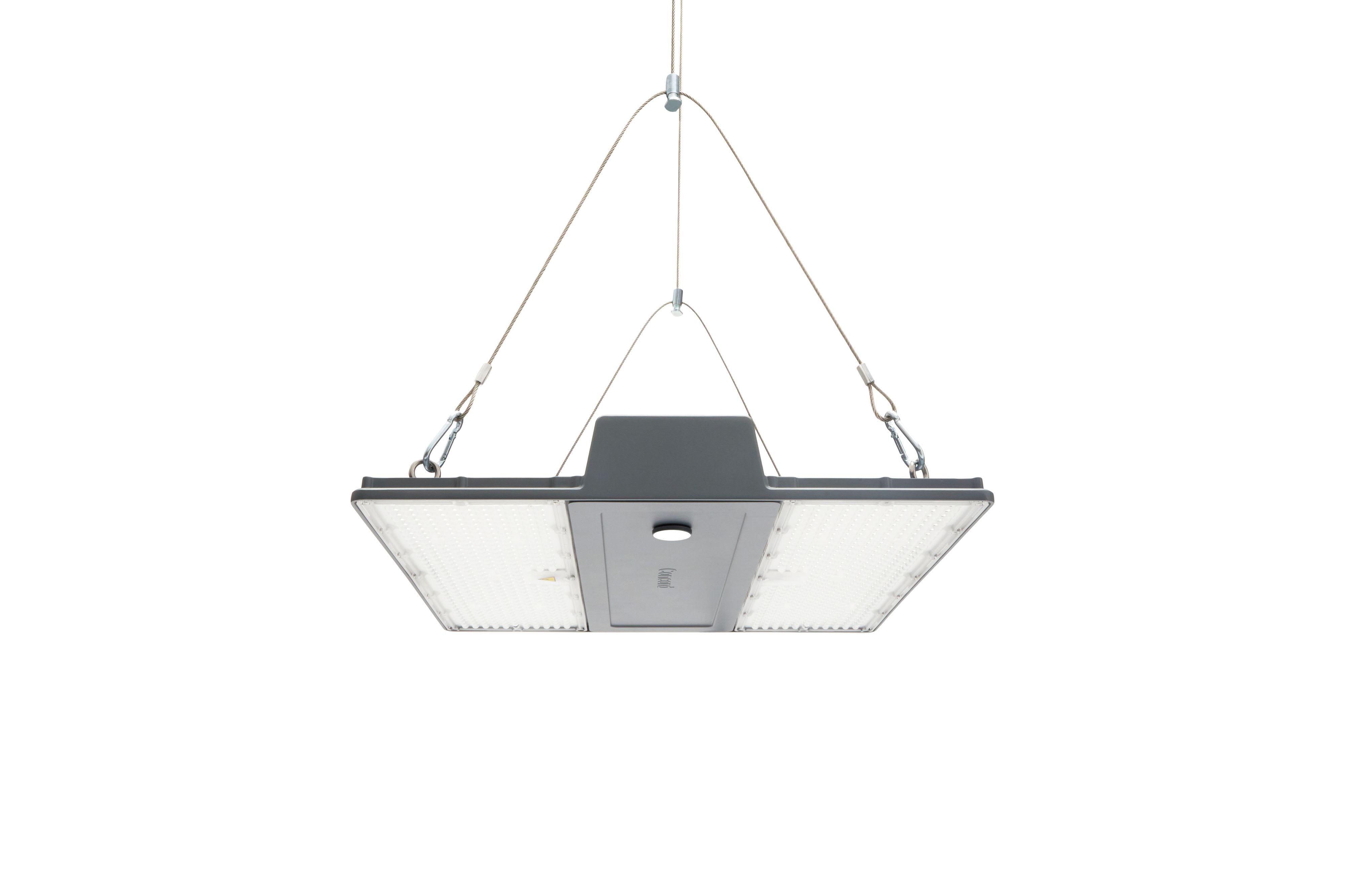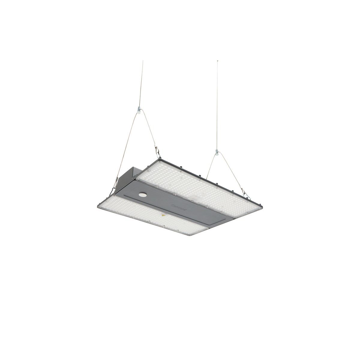 Luminaire grande hauteur pour la logistique et l'industrie. Armature avec angle symétrique Large 75° pour une distribution homogène de l'éclairage. Livré avec un câble d'alimentation de 2m et câbles de suspension de 1m. Corps aluminium et diffuseur polycarbonate. IP65, IK08, Classe I, 4000K, IRC80, SDCM 3. Version SylSmart Connected avec capteur SSA noeud de commande. Flux lumineux 21200lm, Puissance 112W, Efficacité lumineuse 189lm/W. Durée de vie 105 000h (L80B50). Dimensions (LxlxH) 446 x 481 x 87mm. Poids 4,29 kg. Finition Gris basalte RAL7012. Température de fonctionnement -20…+40°C. Armature robuste certifiée ENEC. IFS pour les sites agroalimentaires, Marquage "D" pour les sites exposés au risque incendie. Convient pour les complexes sportifs - certifié VDE impacts de balles et de ballons. Garantie de 5 ans. Adapté à un montage au plafond ou suspendu par les accessoires optionnels. Sylvania est signataire de la charte LED. Produit éligible CEE.