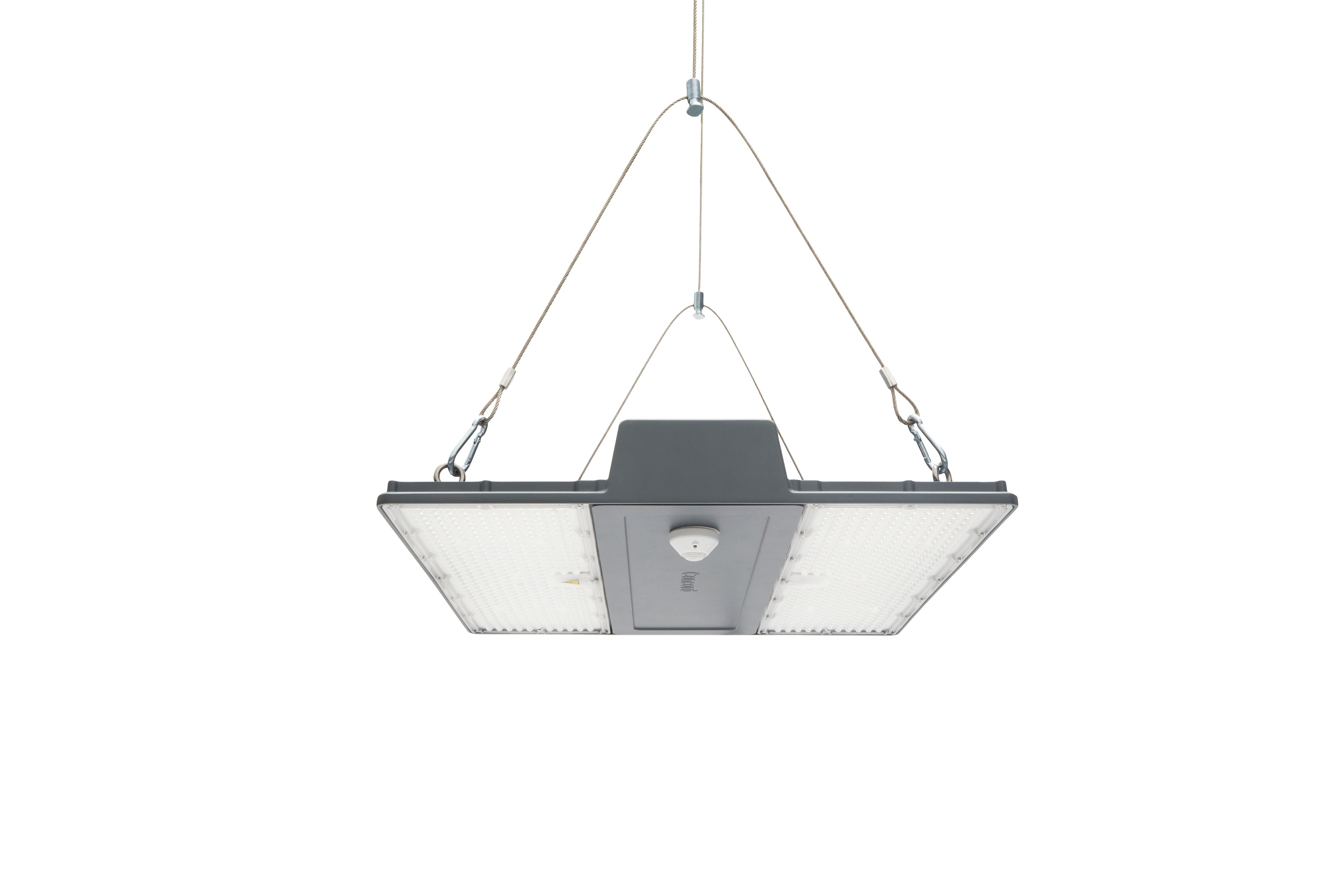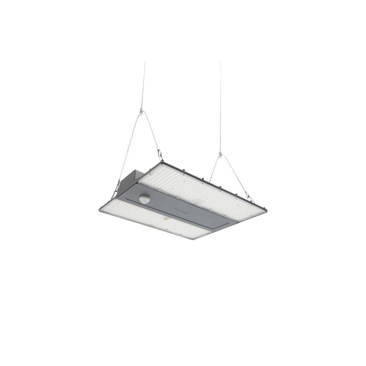 Luminaire grande hauteur pour la logistique et l'industrie. Armature avec angle symétrique Large 75° pour une distribution homogène de l'éclairage. Livré avec un câble d'alimentation de 2m et câbles de suspension de 1m. Corps aluminium et diffuseur polycarbonate. IP65, IK08, Classe I, 4000K, IRC80, SDCM 3. Version SylSmart Connected avec capteur intégré SSA. Flux lumineux 26500lm, Puissance 142W, Efficacité lumineuse 187lm/W. Durée de vie 105 000h (L80B50). Dimensions (LxlxH) 446 x 481 x 102mm. Poids 4,29 kg. Finition Gris basalte RAL7012. Température de fonctionnement -20…+40°C. Armature robuste certifiée ENEC. IFS pour les sites agroalimentaires, Marquage "D" pour les sites exposés au risque incendie. Convient pour les complexes sportifs - certifié VDE impacts de balles et de ballons. Garantie de 5 ans. Adapté à un montage au plafond ou suspendu par les accessoires optionnels. Sylvania est signataire de la charte LED. Produit éligible CEE.