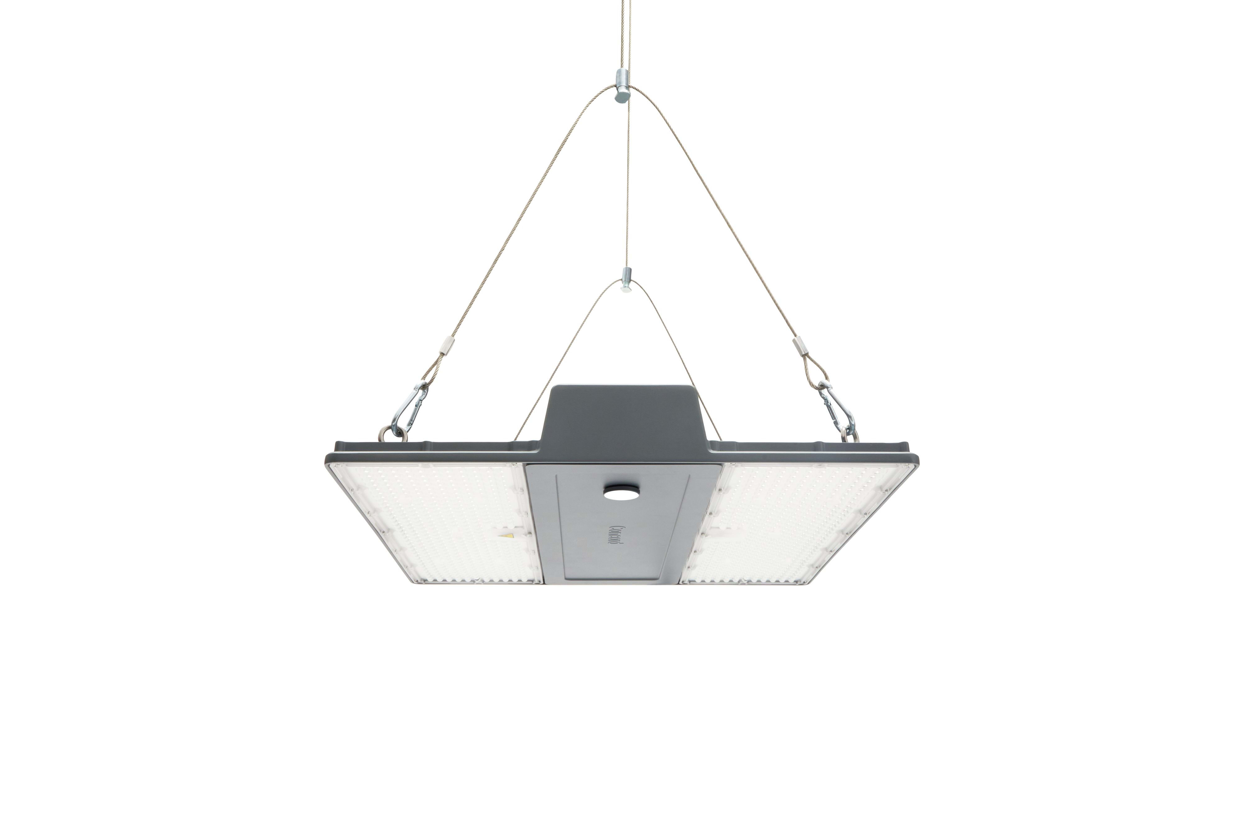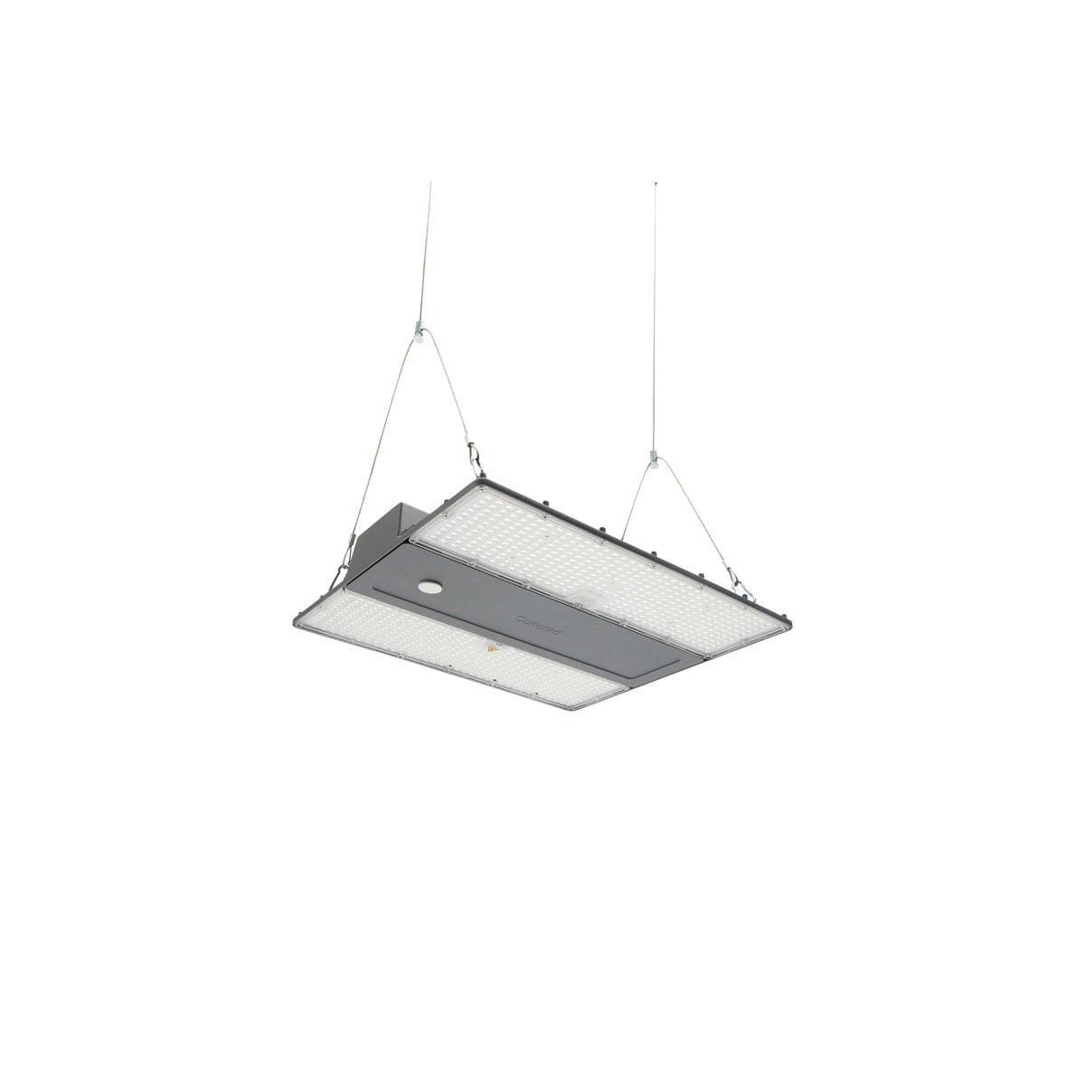Luminaire grande hauteur pour la logistique et l'industrie. Armature avec angle symétrique Large 75° pour une distribution homogène de l'éclairage. Livré avec un câble d'alimentation de 2m et câbles de suspension de 1m. Corps aluminium et diffuseur polycarbonate. IP65, IK08, Classe I, 4000K, IRC80, SDCM 3. Version SylSmart Connected avec capteur SSA noeud de commande. Flux lumineux 26500lm, Puissance 142W, Efficacité lumineuse 187lm/W. Durée de vie 105 000h (L80B50). Dimensions (LxlxH) 446 x 481 x 87mm. Poids 4,29 kg. Finition Gris basalte RAL7012. Température de fonctionnement -20…+40°C. Armature robuste certifiée ENEC. IFS pour les sites agroalimentaires, Marquage "D" pour les sites exposés au risque incendie. Convient pour les complexes sportifs - certifié VDE impacts de balles et de ballons. Garantie de 5 ans. Adapté à un montage au plafond ou suspendu par les accessoires optionnels. Sylvania est signataire de la charte LED. Produit éligible CEE.