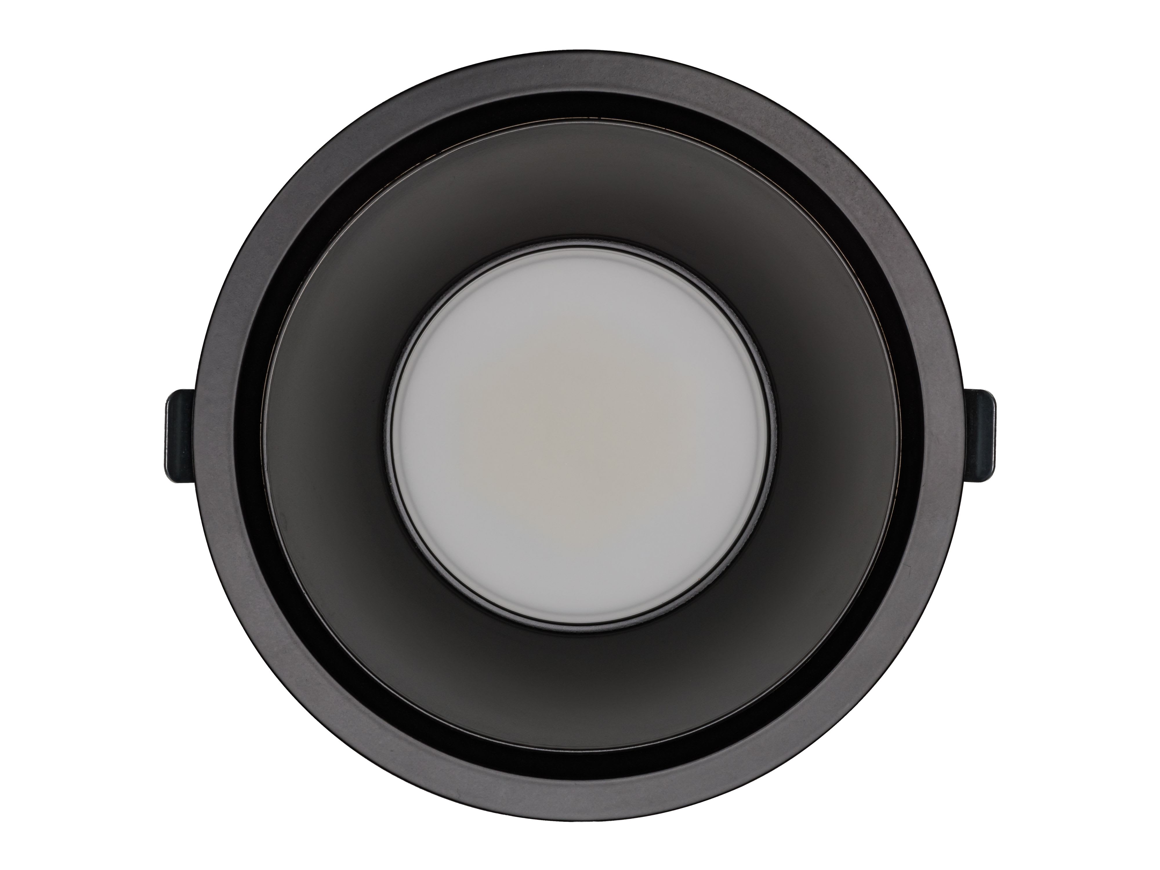 Solstice UGR19 150 15W 1000lm 930 DALI N/N - Downlight LED rond alliant haut confort visuel et performances élevées. Réflecteur noir et collerette noire. UGR<19. 3000K, IRC>90. SDCM<3. 1000lm. 15W. 67lm/W