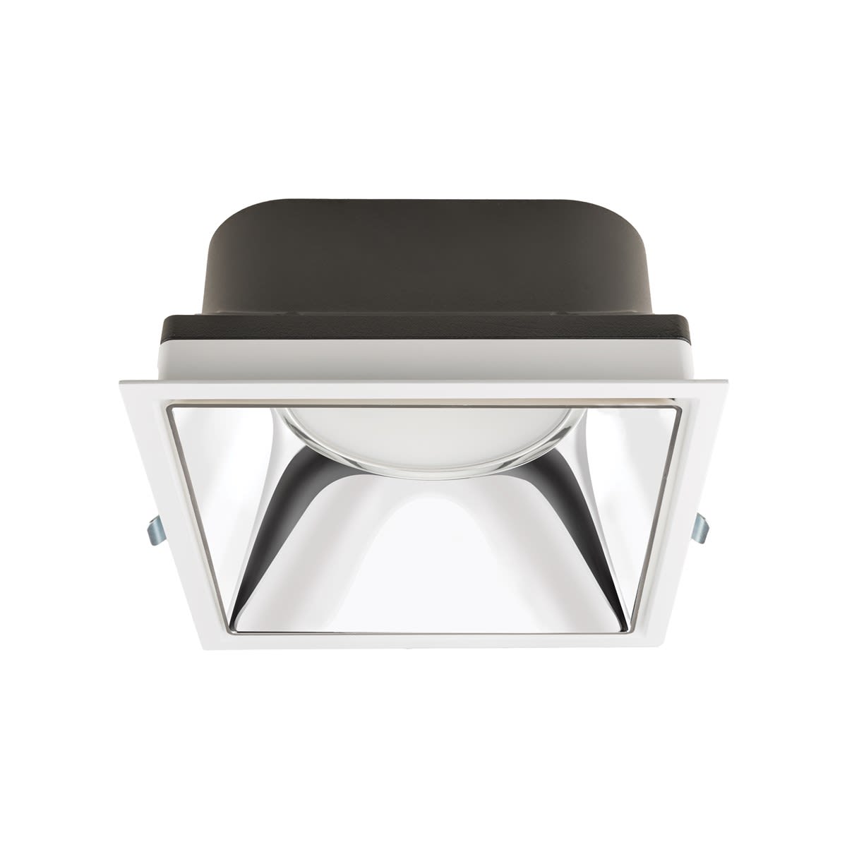 Solstice UGR19 200 Sq 17W 2300lm 930 DALI A/B - Downlight LED carré alliant haut confort visuel et performances élevées. Réflecteur argent et collerette blanche. UGR<19. 3000K, IRC>90. SDCM<3. 2300lm. 17W. 135lm/W