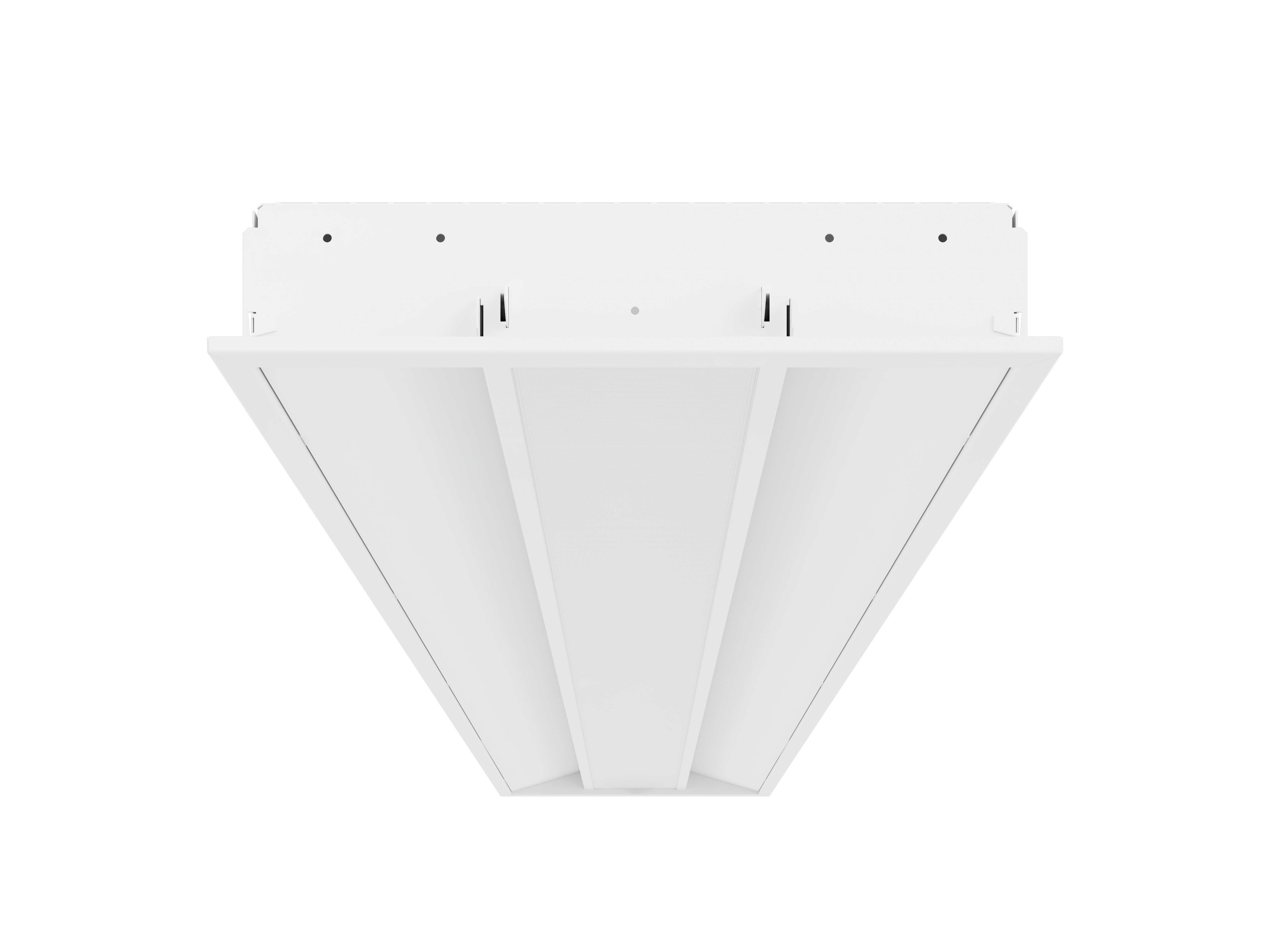 Luminaire LED encastré architectural avec optique micro-prismatique et distribution semi-directe de la lumière. UGR<19. Version haute efficacité (HE) : 118lm/W. Flux lumineux : 3300lm. Température de couleur blanc neutre (4000K). IRC90. Gestion d'éclairage Sylsmart Connected sans capteur, pour fonctionnement en maître/esclave avec un capteur déporté. Caisson fermé (finition blanc RAL 9016) réduisant la pénétration de la poussière et améliorant le facteur de maintenance du luminaire (LMF). IP20, IK03. Dimensions : 1195mm x 295mm x 60mm. Durée de vie 100 000 heures (L80). Garantie 5 ans
