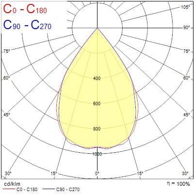 faible éblouissement selon EN 12464-1 (UGR Inf. à 19):