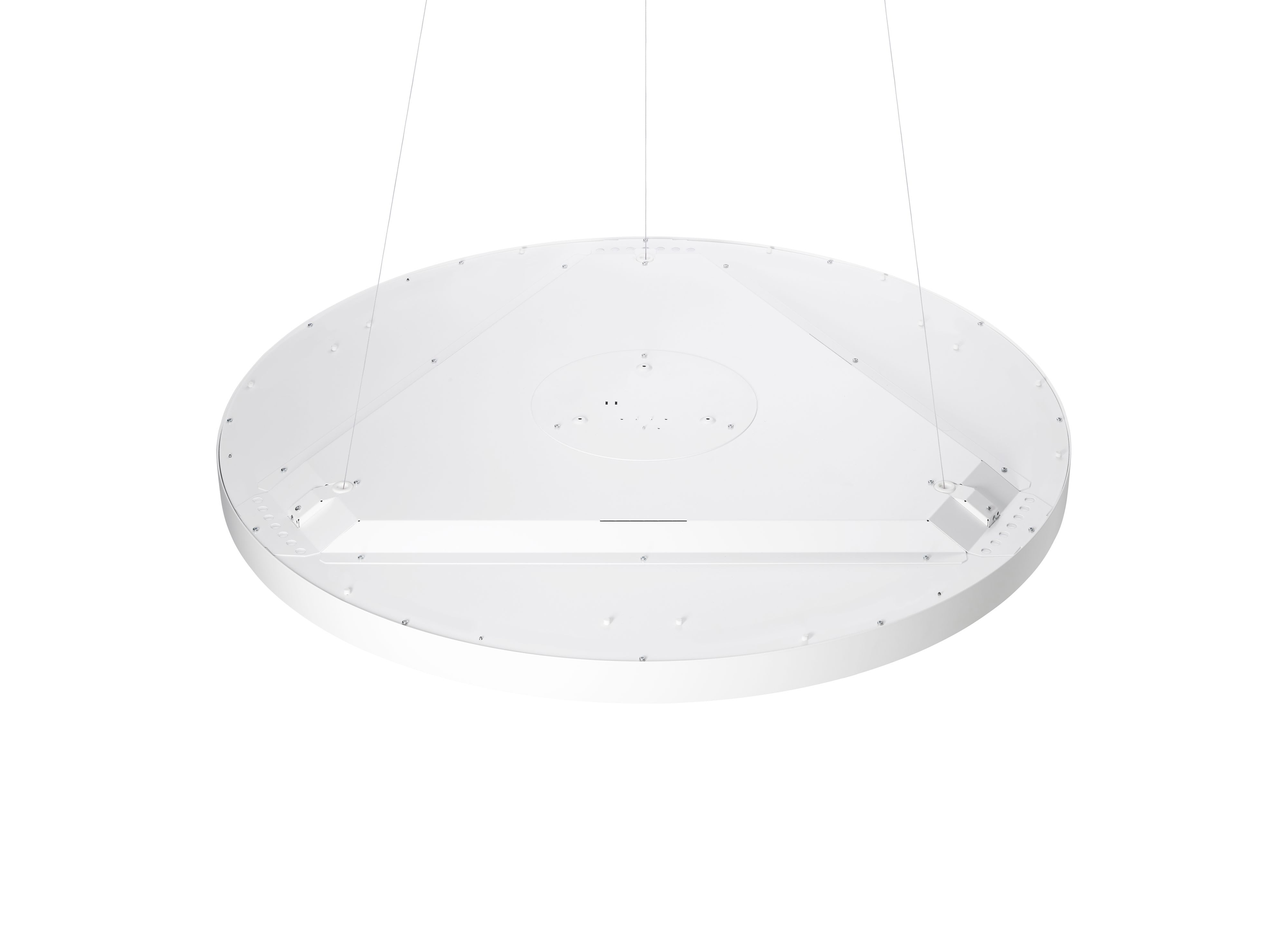 Colossal1200 153,6W 18745lm OPAL Blanc 940 DALI. Luminaire architectural de grand diamètre (1200mm). Installation saillie ou suspendue. Cerclage aluminium sans soudure. Coloris blanc (RAL9016). Garantie 5 ans. Fabriqué en France.