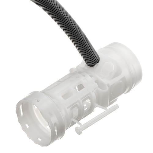 Boîte de banche Maxibanche GTI Ø20 : Prétubée avec 3,15m de gaine ICT Ø20 Entrées inclinées GTI, structure tubulaire et goupille de sécurité pour une résistance mécanique optimale Facilite le tirage des câbles Assure une installation stable