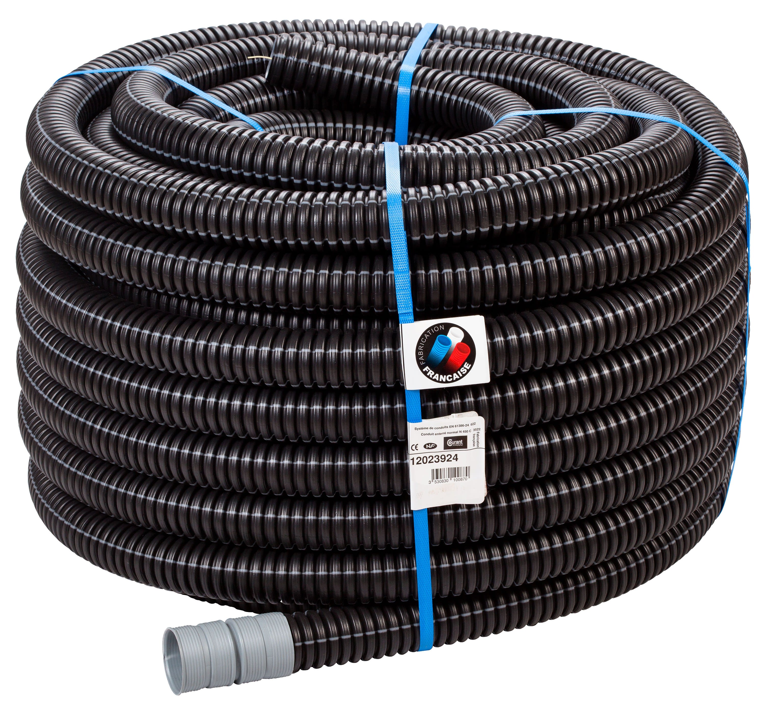 Flexichoc 3522 nbg tap 50/50 - Flexichoc est une gaine électrique ICTA 3522 avec une résistance aux chocs IK10 préconisée par Enedis. Cette gaine annelée se pose en souterrain ou en montage apparent ou encastré dans les installations électriques des bâtiments.Le fourreau électrique Flexichoc répond à différentes applications : pour un passage en colonne technique dans les bâtiments collectifs, pour les câbles d’alimentation entre les points de charges et les points de livraison (bornes VE), la protection des câbles sur les chemins de câbles, l'utilisation dans les vide sanitaire (Enedis) ou pour relier le compteur Enedis au tableau de l'abonné.Ce produit a une double peau ainsi qu'un fil tire aiguille en polyamide pour une mise en œuvre plus simple. Il est aussi renforcé UV pour une meilleure tenue lors d'un stockage courte durée. Disponible du Ø40 au ⌀160, la gaine Flexichoc vous assure une protection optimale de vos installations électriques dans différents environnements de pose. Livré avec un manchon ignifugé. IK10 - Non propagateur de la flamme - Conçu avec des matières plastiques 100% recyclables - Fabriqué en France
