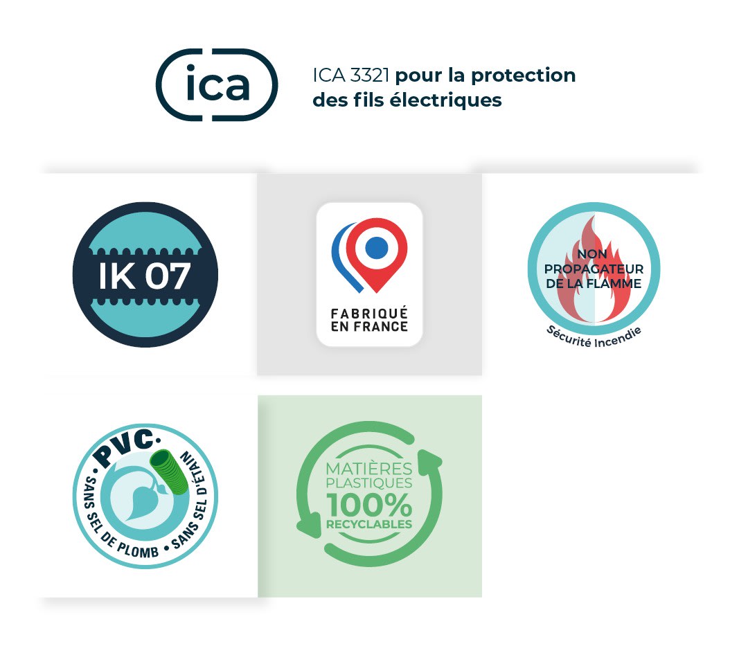 ICA 20/100 - La gaine ICA 3321 est destinée à la protection des vos installations électriques. Elle se pose en montage apparent ou encastré dans les installations électriques des bâtiments. Cette gaine électrique annelée est fabriquée en PVC, elle est disponible en plusieurs dimensions et a pour but de protéger les fils électriques conducteurs. IK07 - Non propagateur de la flamme - Conçu avec des matières plastiques 100% recyclables - Fabriqué en France