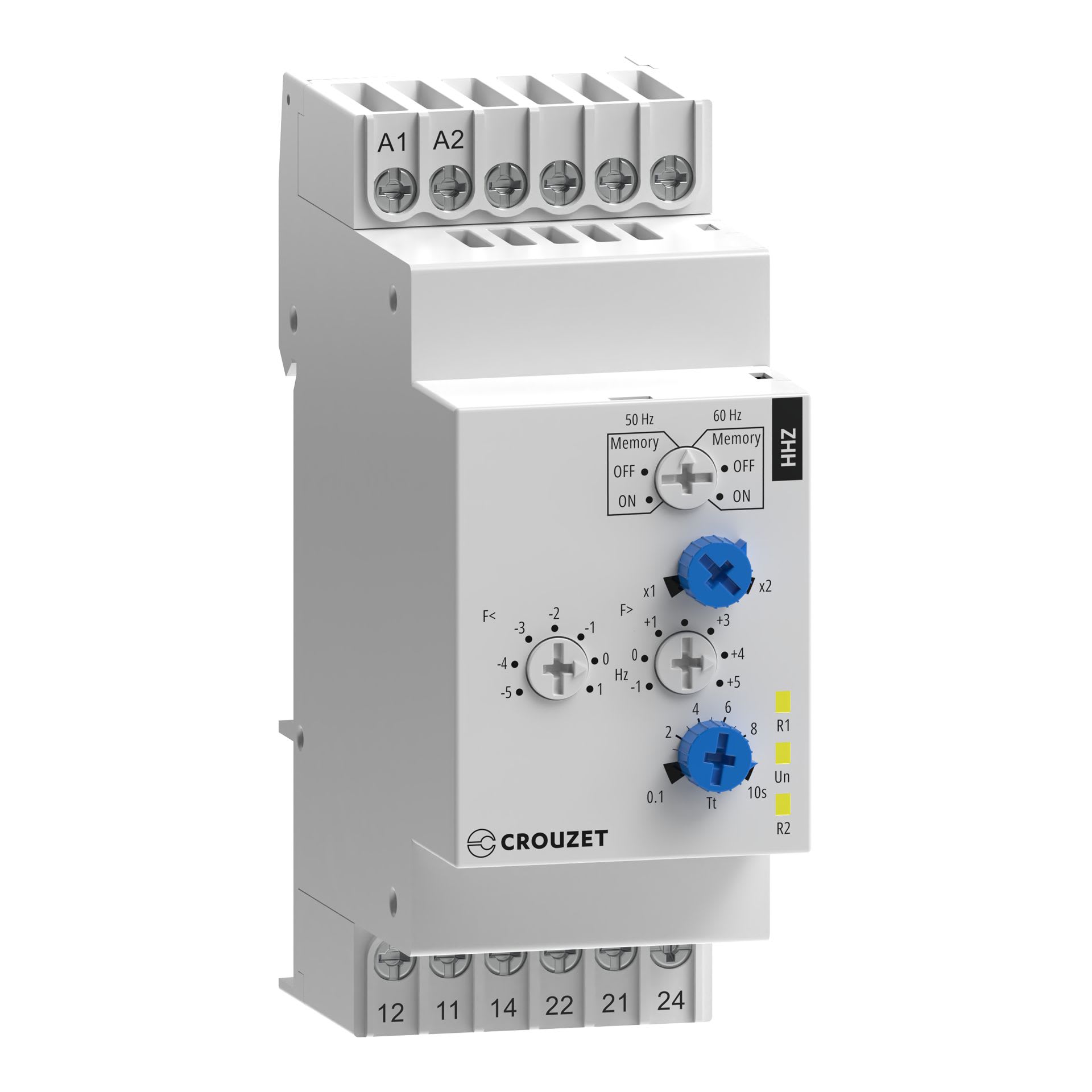 Crouzet - Relais de contrôle de fréquence HHZ, 120-277 VAC, 2 C/O, 5 A, 35 mm - 84872501