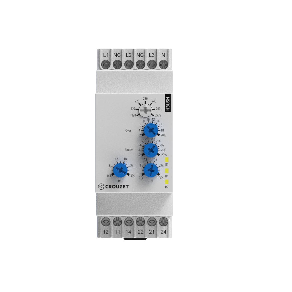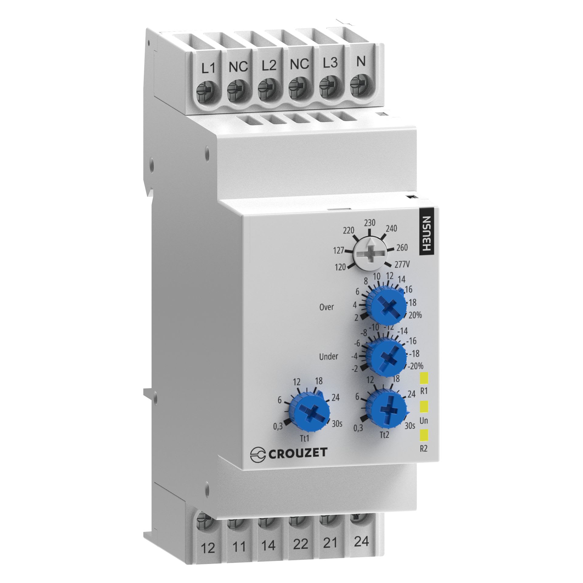 Crouzet - Relais de contrôle de phase et de tension H3USN, 120-277 VAC, 2 C/O, 5 A, 35 mm - 84873221