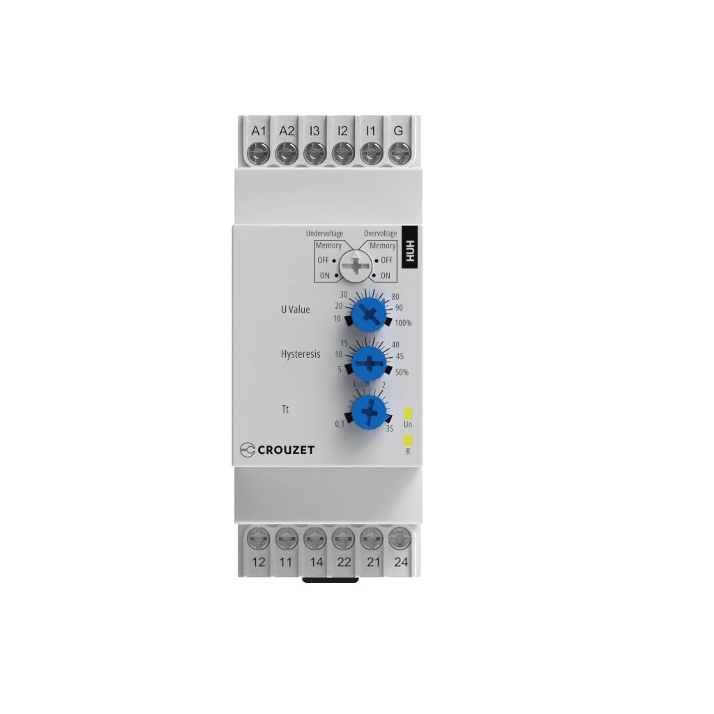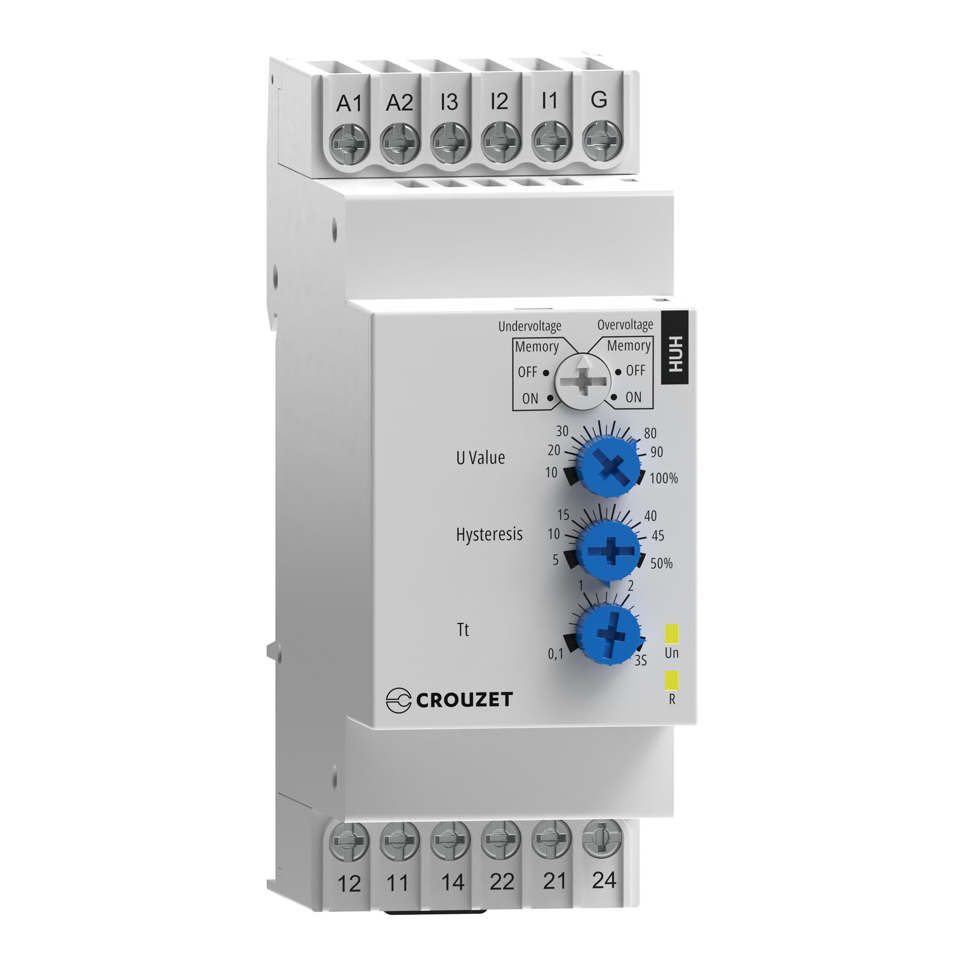 Crouzet - Relais de contrôle de tension HUH, 24-240 VAC/DC, 2 C/O, 5 A, 35 mm - 84872130