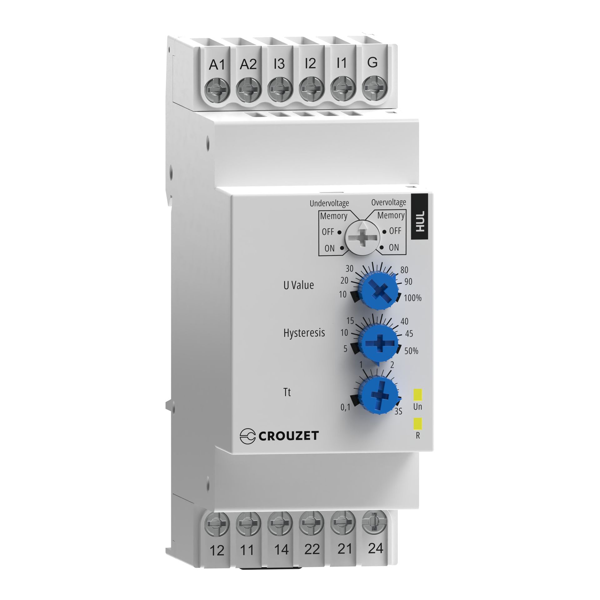 Crouzet - Relais de contrôle de tension HUL, 24-240 VAC/DC, 2 C/O, 5 A, 35 mm - 84872120
