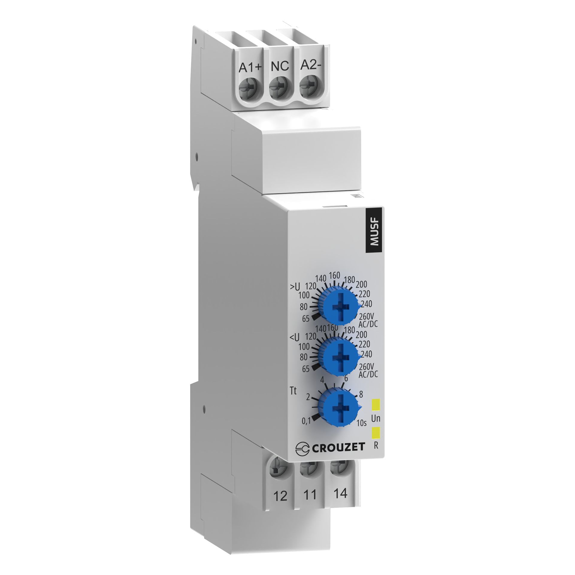 Crouzet - Relais de contrôle de tension MUSF260, 110-240 VAC/VDC, 1 C/O, 5 A, 17,5 mm - 84872152