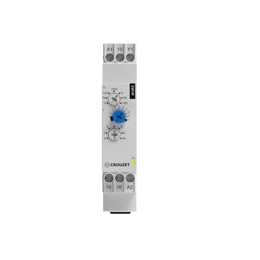 Crouzet - Relais temporisé Chronos 2 MUR3, 12-240 VAC/DC, 1 C/O, 8A, 0,1s - 100h, 17,5 mm - 88827103