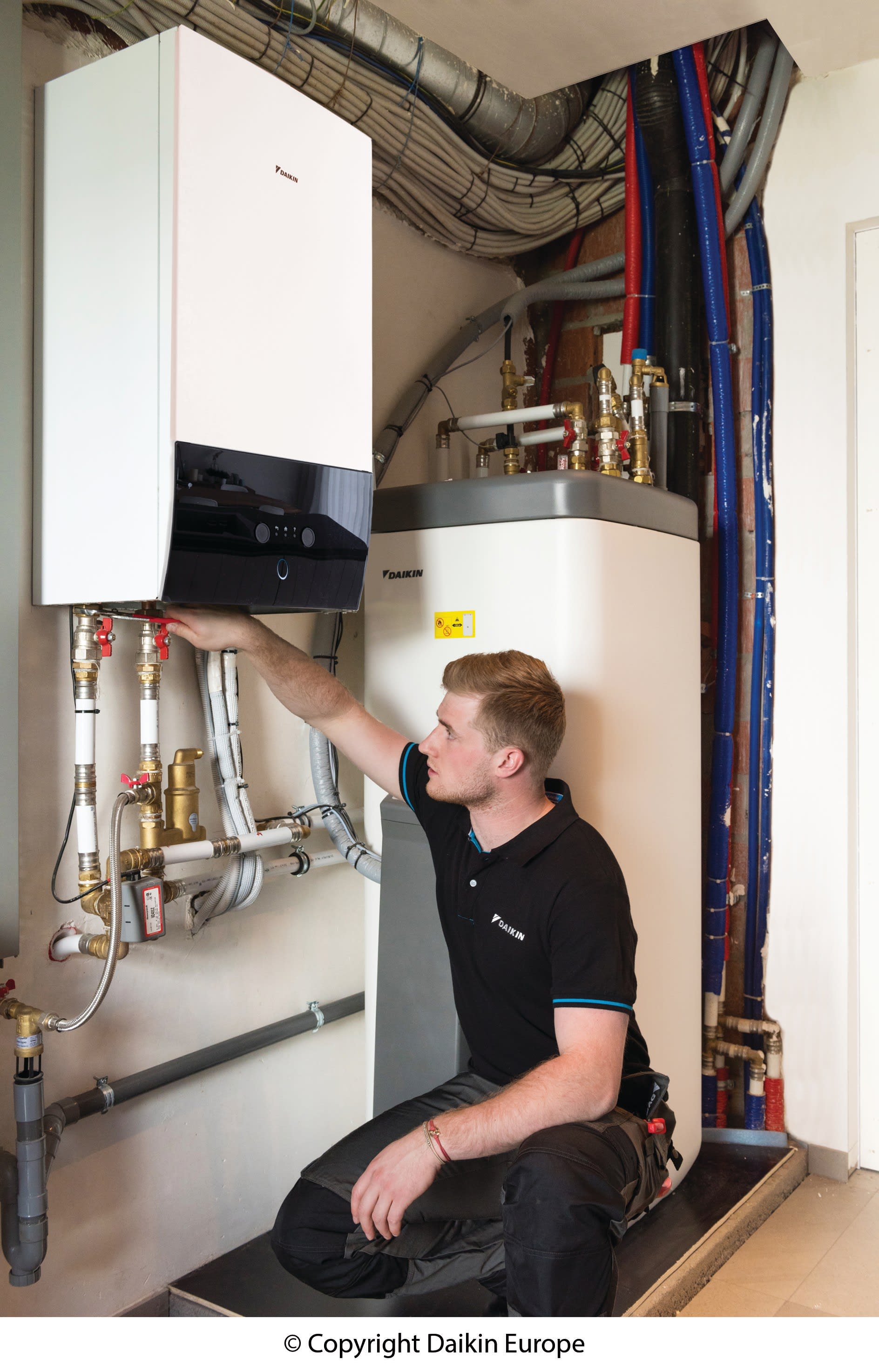 Unité intérieure murale Daikin Altherma 3H MT Taille 12 monophasée Chauffage d’appoint intégréFacilité d’accès aux pièces hydrauliquesMise en service simplifiéePilotage à distance