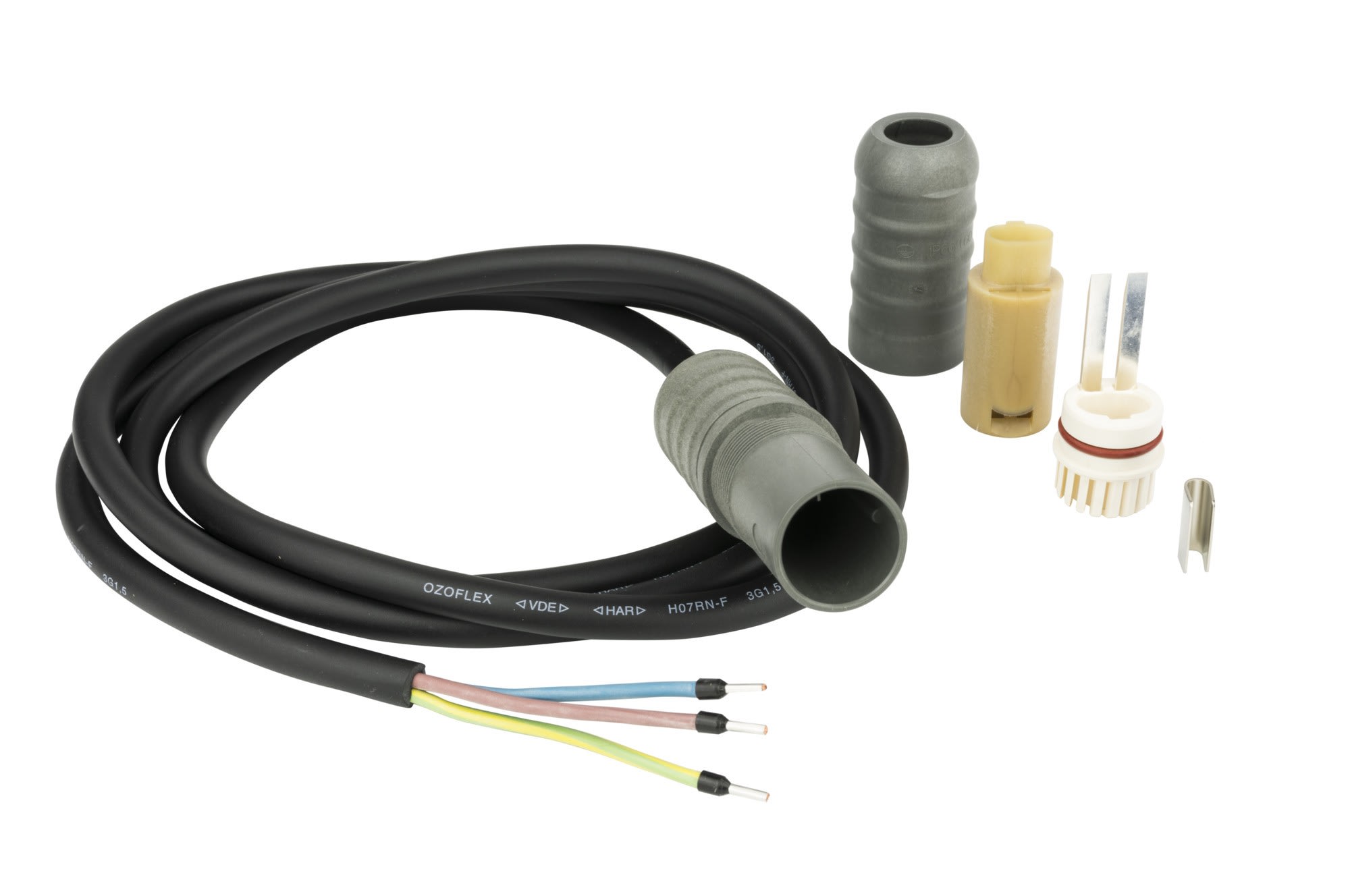 DEVIconnecto BA, tension nominale max. 250V, 16A max., Classe IP66, raccordement du Câble chauffat avec Câble d'alimentation 1,5 m sans terminaison, pour Câble DEVIiceguard (B), DEVIhotwatt (B), DEVIpipguard (B)