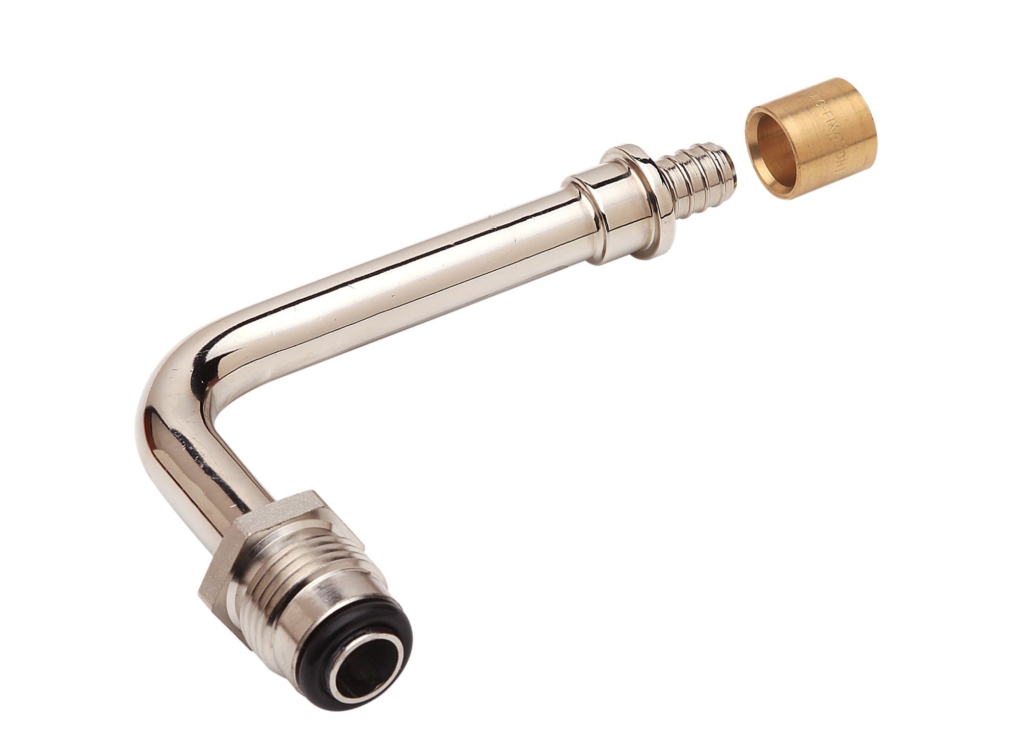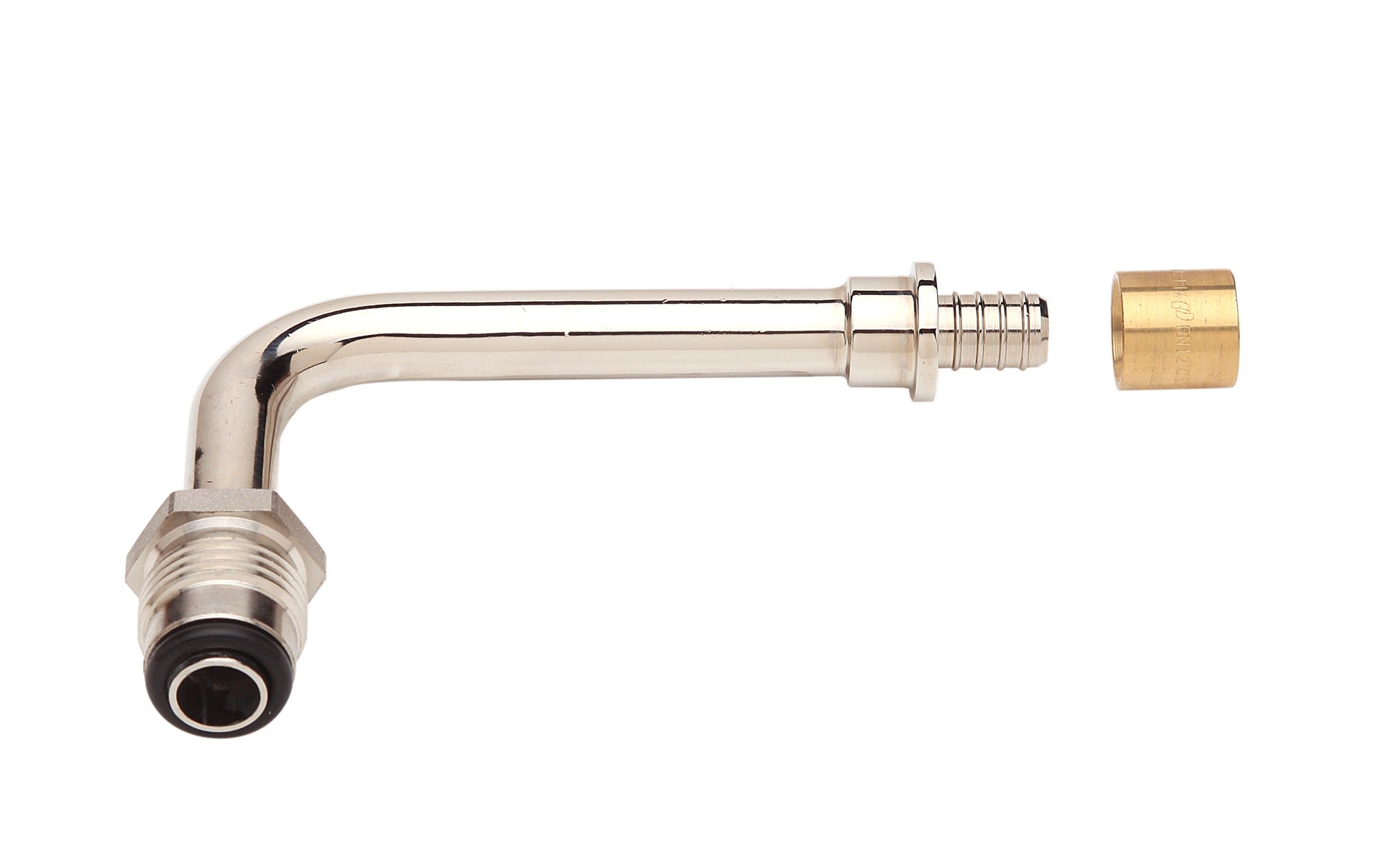 Coude rotatif 75mm pour tube PER16, à glisser. Permet de transformer un corps de vanne standard en corps hydrocablé