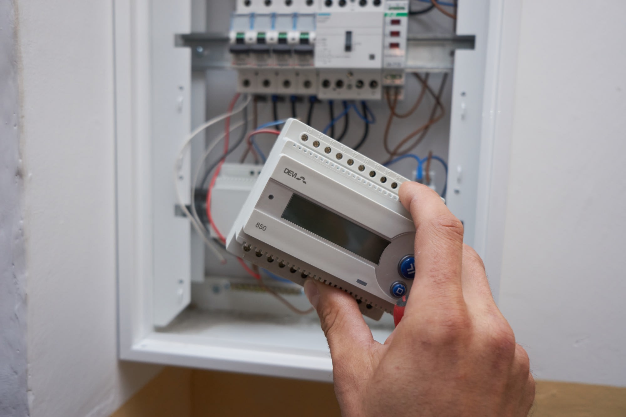 Le ECtemp/DEVIreg™ 850 version IV est un régulateur avancé avec affichage LED utilisé pour les applications extérieures, au sol ou sur le toit. Les capteurs fournissent des informations sur le niveau d'humidité et la température.