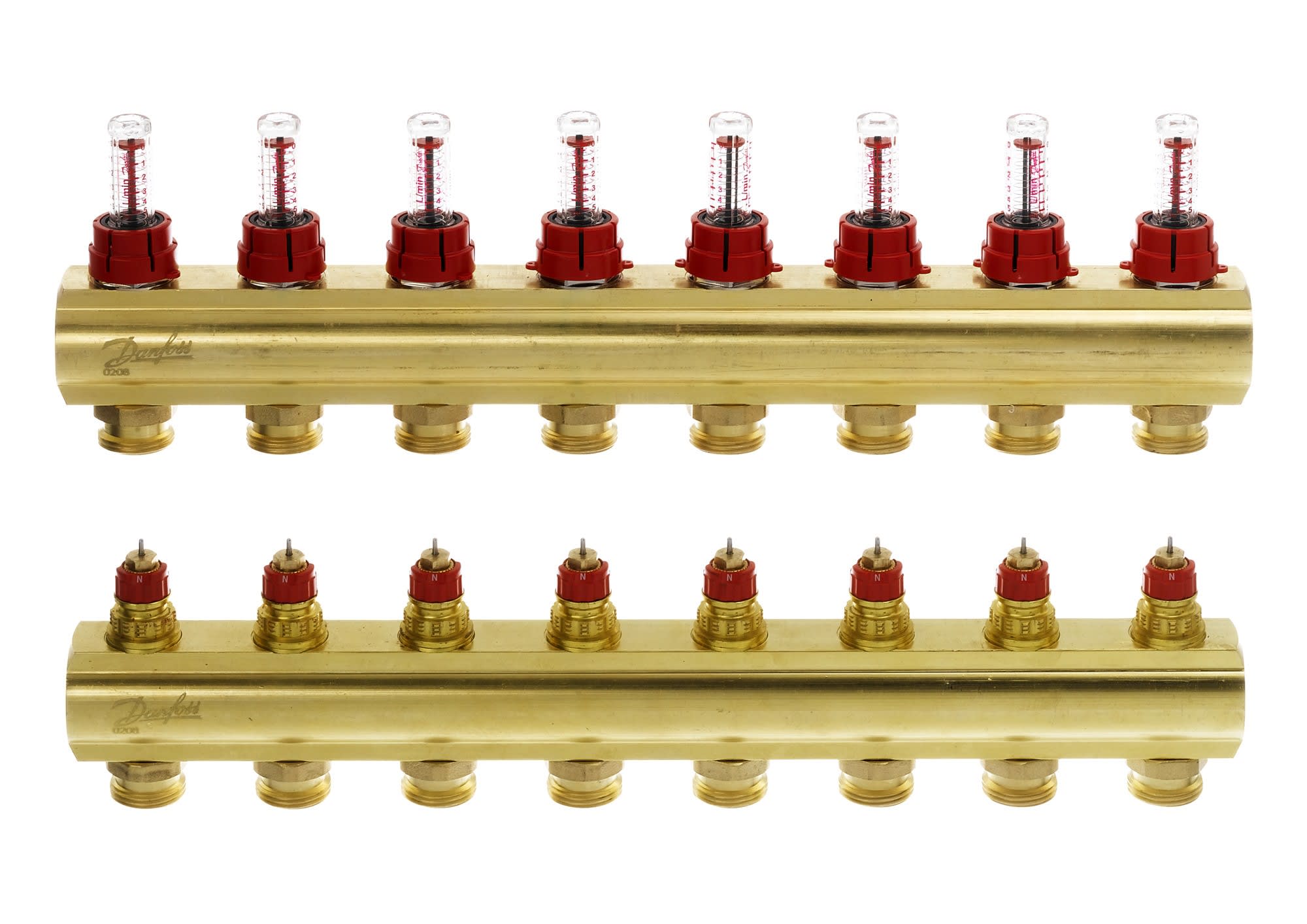 Danfoss - FHF-8F Collecteur laiton 8+8, inserts réglables et débitmètres - 088U0528