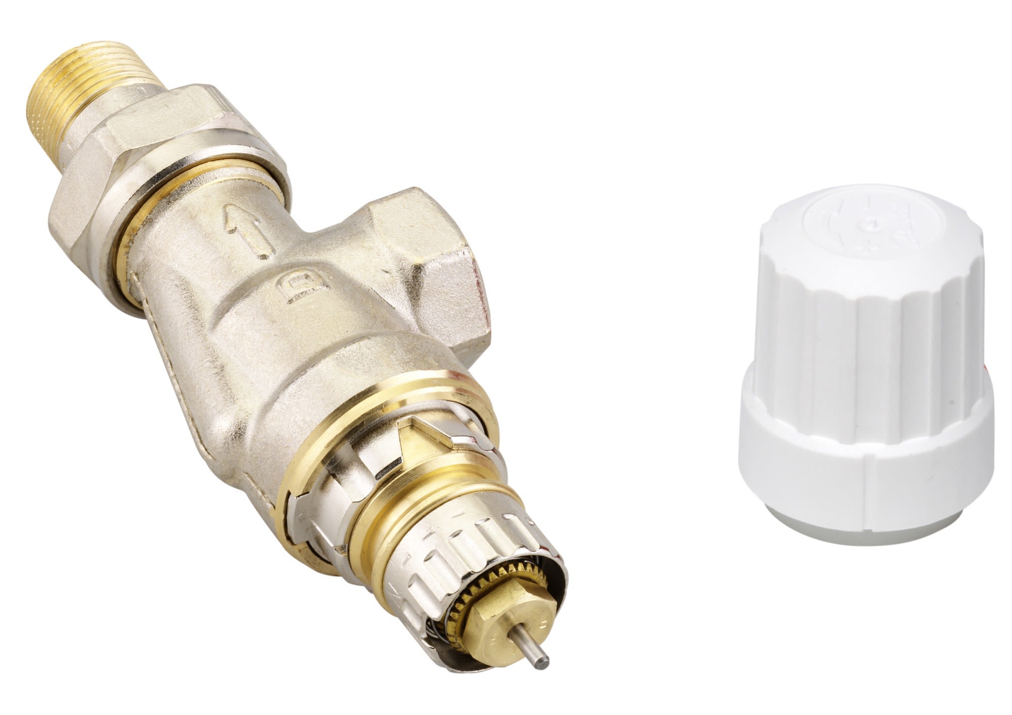 Les robinets de radiateur RA-IN sont conçus pour fonctionner conjointement avec des têtes thermostatiques afin de permettre la réalisation d’économies d’énergie. Les corps des robinets RA-IN peuvent être utilisés avec tous les types d’éléments thermostatiques de la gamme Danfoss RA, comme les têtes RA2000, RAX, RAW et les têtes électroniques Danfoss Eco™ et Danfoss Ally™, et avec les actionneurs électrothermiques TWA-A.Les robinets de radiateur RA-IN sont destinés aux systèmes de chauffage bitubes. Ils sont adaptés à la gamme de raccords Danfoss. Une gamme complète de raccords à compression pour tubes en PER, AluPEX, cuivre et acier est disponible. Les robinets de radiateur sont livrés en position « N » (complètement ouverts). Les robinets RA-IN intègrent un dispositif de limitation du facteur kv pour prérégler le débit d’eau max. et sont disponibles avec les plages de réglage suivantes : •RA-IN 10 : kv = 0,05 - 0,56 m3 /h •RA-IN 15 : kv = 0,058 - 0,73 m3 /h •RA-IN 20/25 : kv = 0,14 - 1,04 m3 /hChaque corps de robinet est fourni avec un capuchon de protection blanc qui peut être utilisé pour la régulation manuelle pendant les phases du chantier. Le capuchon de protection ne doit pas être utilisé comme dispositif de fermeture manuelle. Un dispositif de fermeture manuelle spécial est disponible comme accessoire. Les corps des robinets RA-IN sont fabriqués en laiton avec un revêtement en nickel. La tige de pression du presse-étoupe est en acier chromé et le joint torique est lubrifié à vie. Le presse-étoupe à joint torique peut être remplacé sans vidanger le système. -Robinets conformes à la norme européenne EN215-La plage de préréglage s’étend de 1 à 4 puis N.-La position N ouvre entièrement le robinet, permettant la vidange ou le rinçage. -Le réglage N doit être utilisé dans les installations monotubes.-Les réglages en dehors de 1 à 4 et N doivent être évités.-Lorsque la tête thermostatique a été installée, le préréglage ne peut pas être modifié accidentellement.