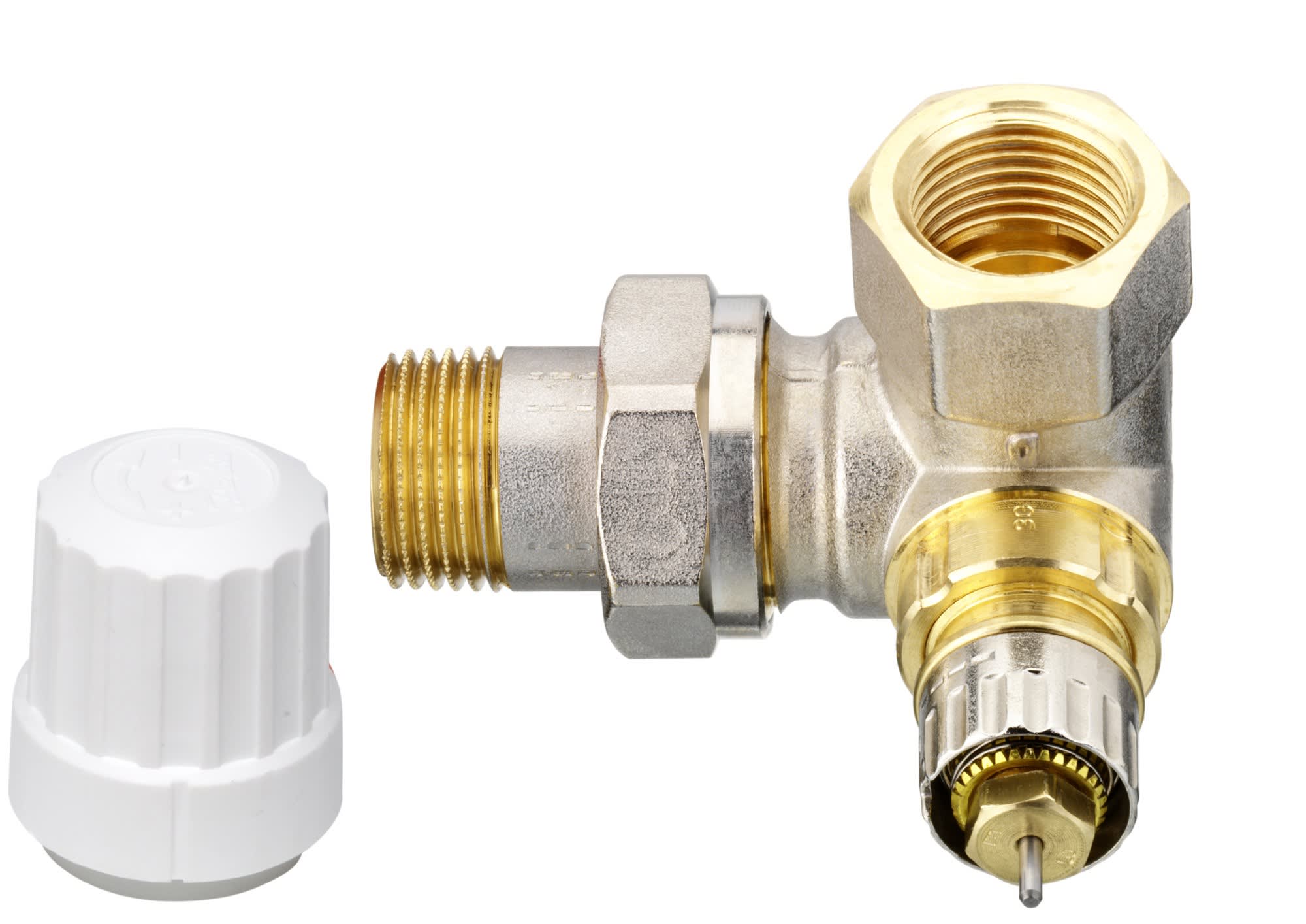 Les robinets de radiateur RA-IN sont conçus pour fonctionner conjointement avec des têtes thermostatiques afin de permettre la réalisation d’économies d’énergie. Les corps des robinets RA-IN peuvent être utilisés avec tous les types d’éléments thermostatiques de la gamme Danfoss RA, comme les têtes RA2000, RAX, RAW et les têtes électroniques Danfoss Eco™ et Danfoss Ally™, et avec les actionneurs électrothermiques TWA-A.Les robinets de radiateur RA-IN sont destinés aux systèmes de chauffage bitubes. Ils sont adaptés à la gamme de raccords Danfoss. Une gamme complète de raccords à compression pour tubes en PER, AluPEX, cuivre et acier est disponible. Les robinets de radiateur sont livrés en position « N » (complètement ouverts). Les robinets RA-IN intègrent un dispositif de limitation du facteur kv pour prérégler le débit d’eau max. et sont disponibles avec les plages de réglage suivantes : •RA-IN 10 : kv = 0,05 - 0,56 m3 /h •RA-IN 15 : kv = 0,058 - 0,73 m3 /h •RA-IN 20/25 : kv = 0,14 - 1,04 m3 /hChaque corps de robinet est fourni avec un capuchon de protection blanc qui peut être utilisé pour la régulation manuelle pendant les phases du chantier. Le capuchon de protection ne doit pas être utilisé comme dispositif de fermeture manuelle. Un dispositif de fermeture manuelle spécial est disponible comme accessoire. Les corps des robinets RA-IN sont fabriqués en laiton avec un revêtement en nickel. La tige de pression du presse-étoupe est en acier chromé et le joint torique est lubrifié à vie. Le presse-étoupe à joint torique peut être remplacé sans vidanger le système. -Robinets conformes à la norme européenne EN215-La plage de préréglage s’étend de 1 à 4 puis N.-La position N ouvre entièrement le robinet, permettant la vidange ou le rinçage. -Le réglage N doit être utilisé dans les installations monotubes.-Les réglages en dehors de 1 à 4 et N doivent être évités.-Lorsque la tête thermostatique a été installée, le préréglage ne peut pas être modifié accidentellement.