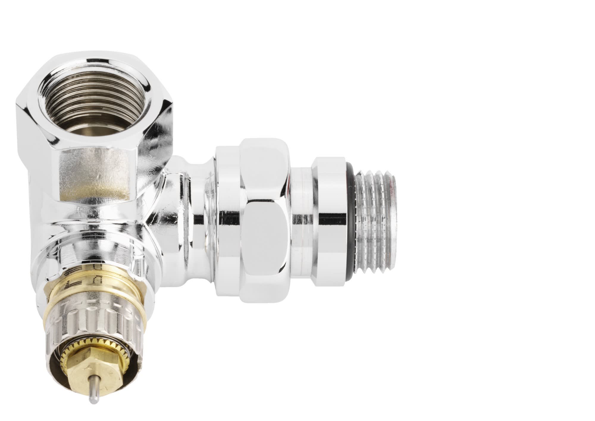 RA-NCX corps thermostatique Danfoss à Kv réglable, chromé pour radiateur design. DN15 angle à droite