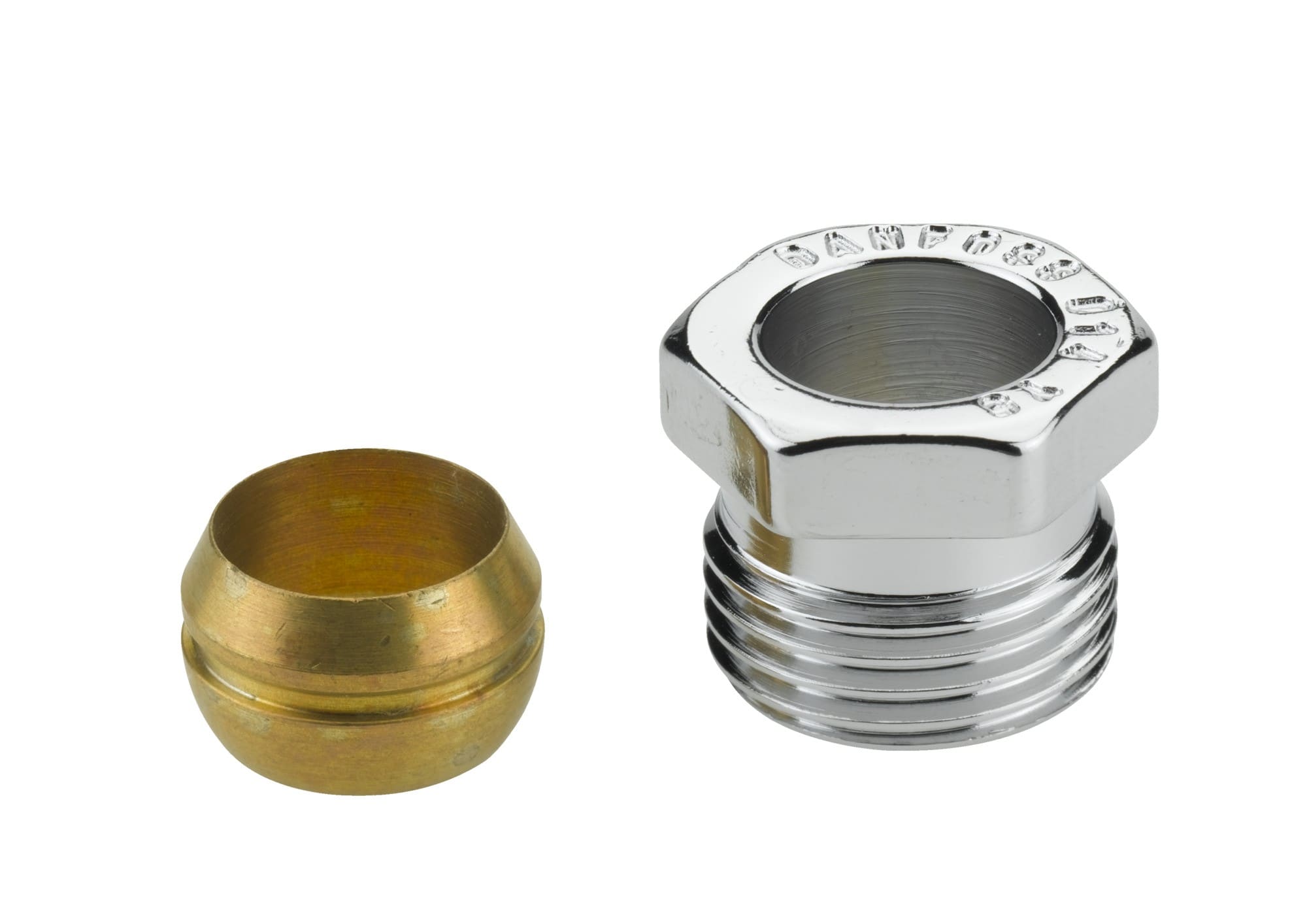 Danfoss-Raccord à visser chromé mâle 1/2" pour tube cuivre 12/14