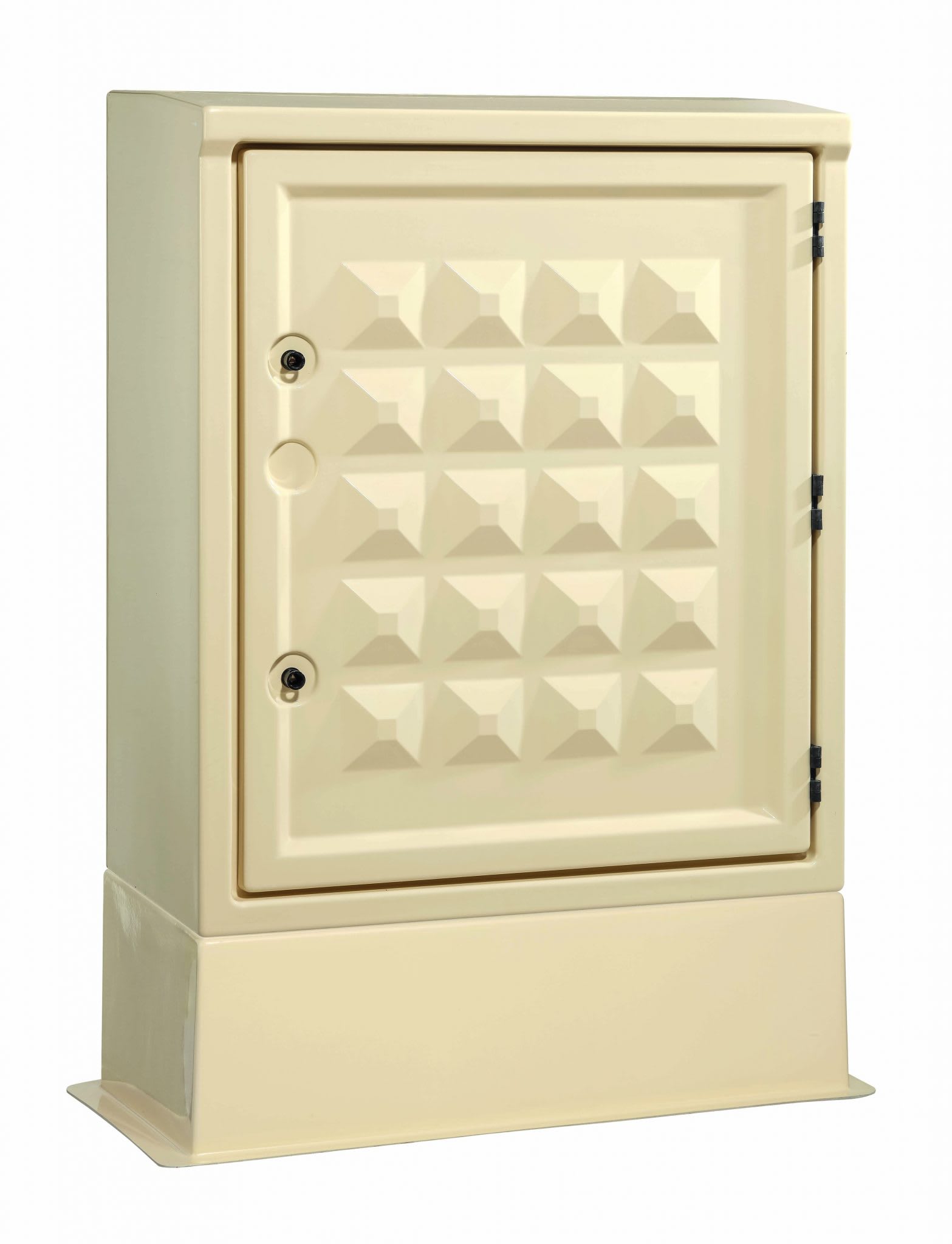 Armoire BPS polyester 682 grand modèle ivoire pour branchement provisoire de 36 à 250 kVA - sur socle métallique + serrures 1/4 de tour