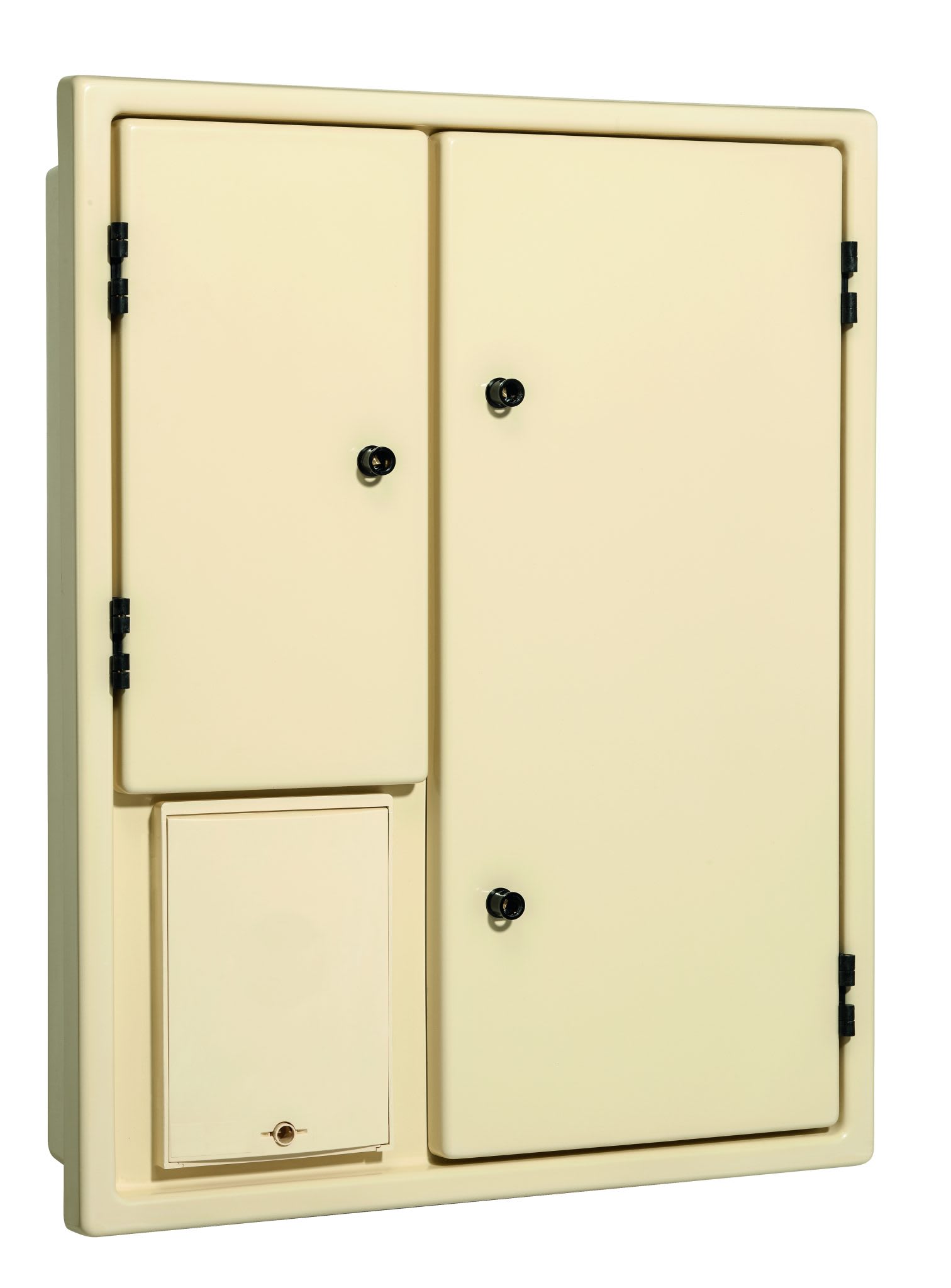 Coffret Oisans 180 CIBE ivoire - 2 portes lisses, 2 compartiments juxtaposés avec CIBE monophasé 60A - livré avec 4 pattes de fixation sur poteau feuillard