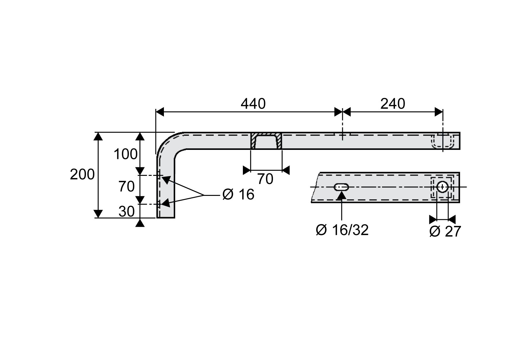 Dervaux Distribution - BP70 680 bras horizontal en U70 longueur 680 - Codet 6851166 - BP70 680