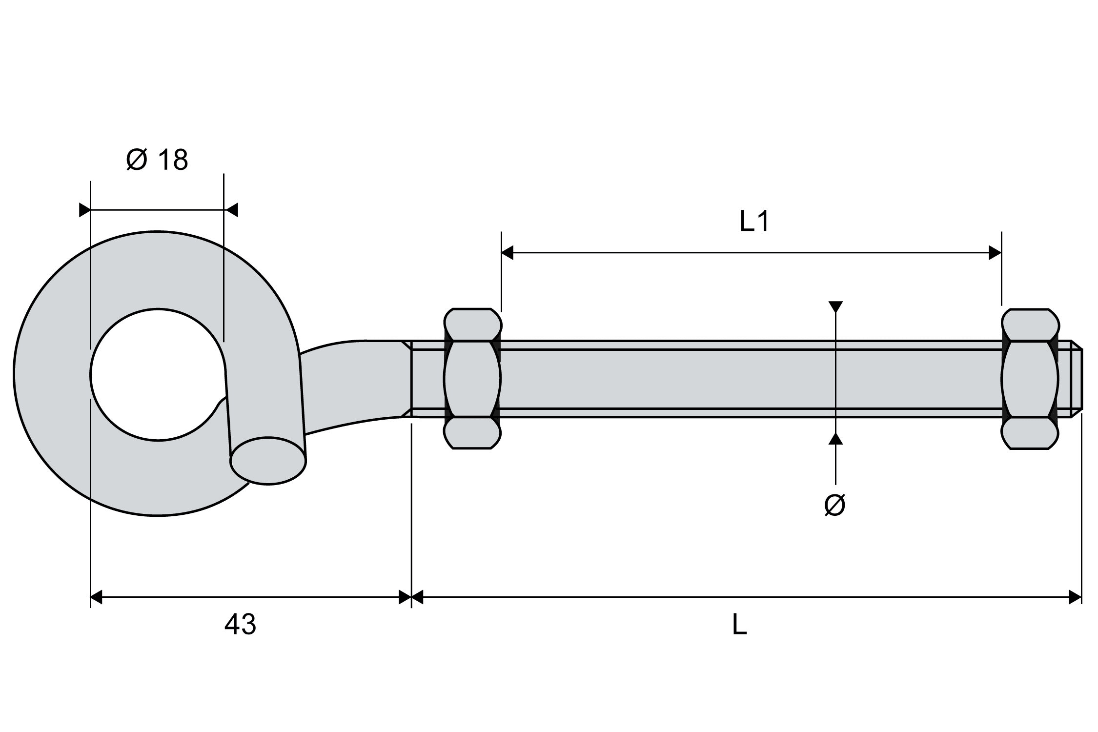 Dervaux Distribution - BQC12 350 boulon queue de cochon pour fixation sur poteau - Codet 6827243 - BQC12 350