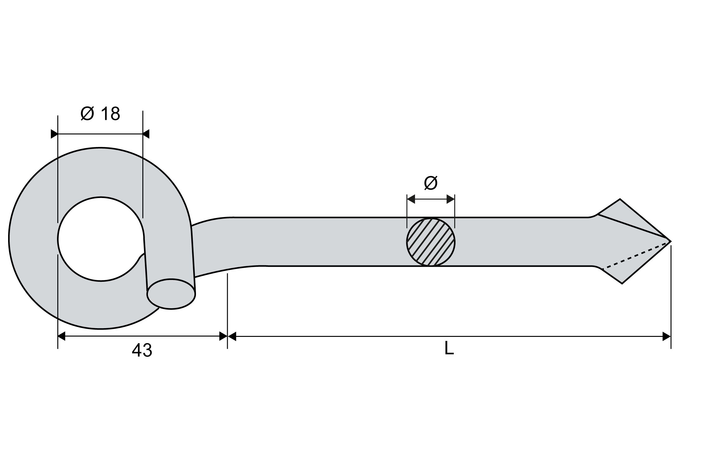 TQC12 200 tige queue de cochon à scellement codet 6827418 longueur 200 en acier galvanisé à chaud