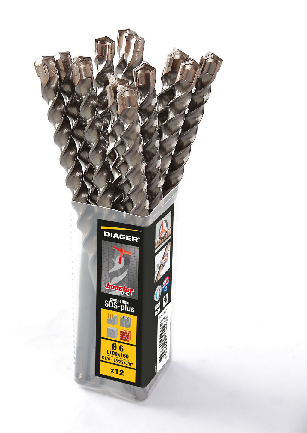 Diager - 12 Forets béton BOOSTER 6x210 3 taillants attachement SDS+ - 157LD06L0210