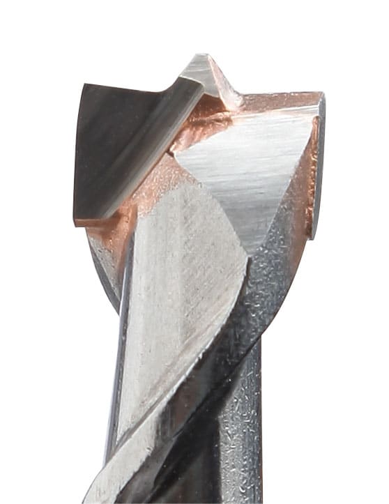 Foret pour le perçage des matériaux composites comme les panneaux de façade intérieur ou extérieur (panneaux fibre-ciment, panneaux High Pressure Laminated). Les traceurs latéreaux permettent au foret de rester dans l'axe et de faire un trou propre. Le ca