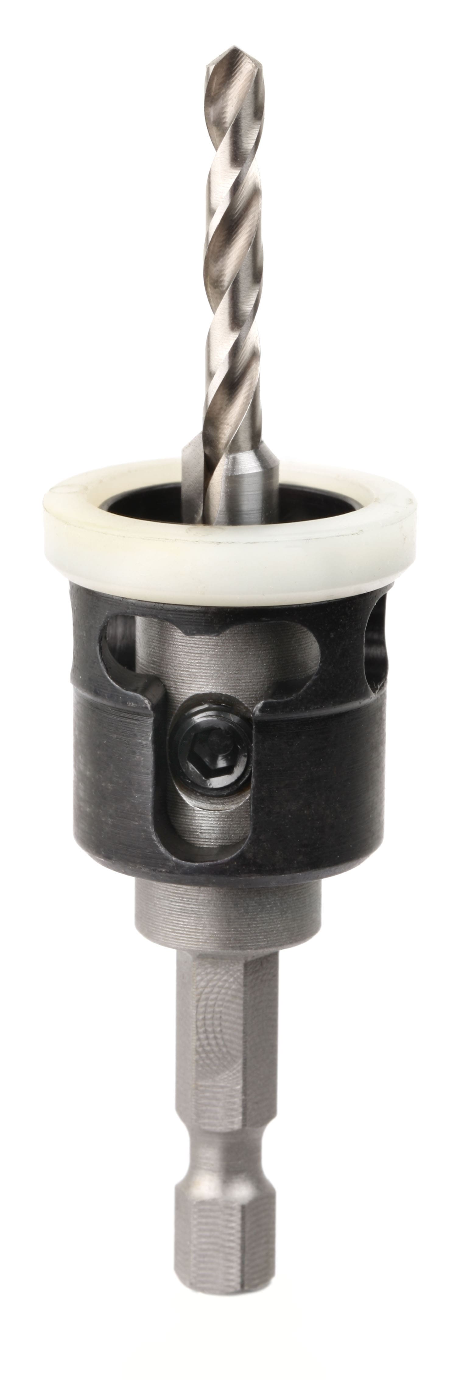 Outil spécial pour la pose de terrasse, l'outil permet de réaliser en une opération un avant trou et le fraisage pour loger la tête de vis. La butée de profondeur est réglable, unebague nylon évite de marquer les lames de terrasse. Ce système garantie un