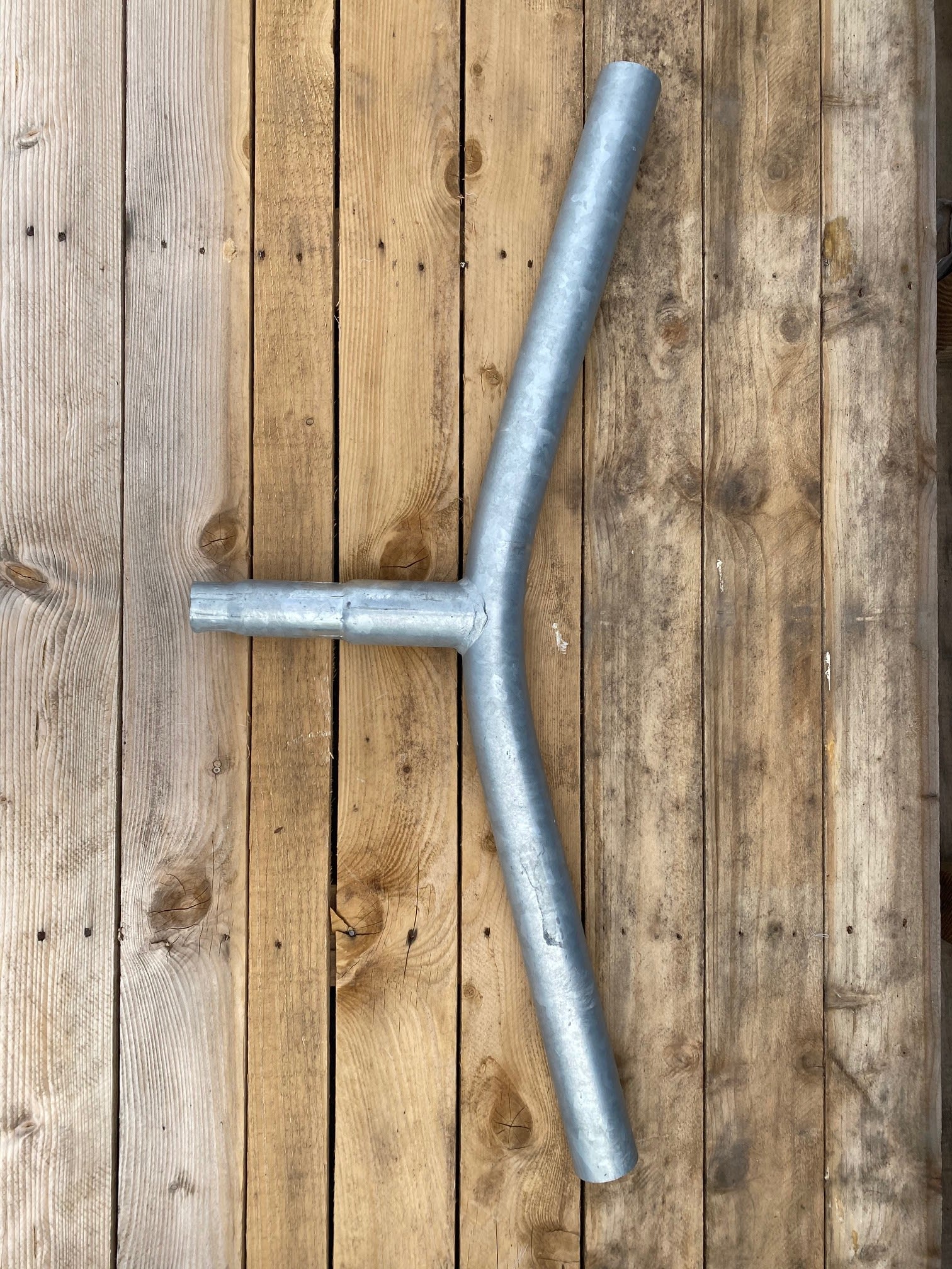 Crosse double en acier glavanisé pour une installation sur mat de diametre 60mm ou 62mm, longueur 0,5m sur un angle de 180°, inclinaison 5°, poids 5,9kg