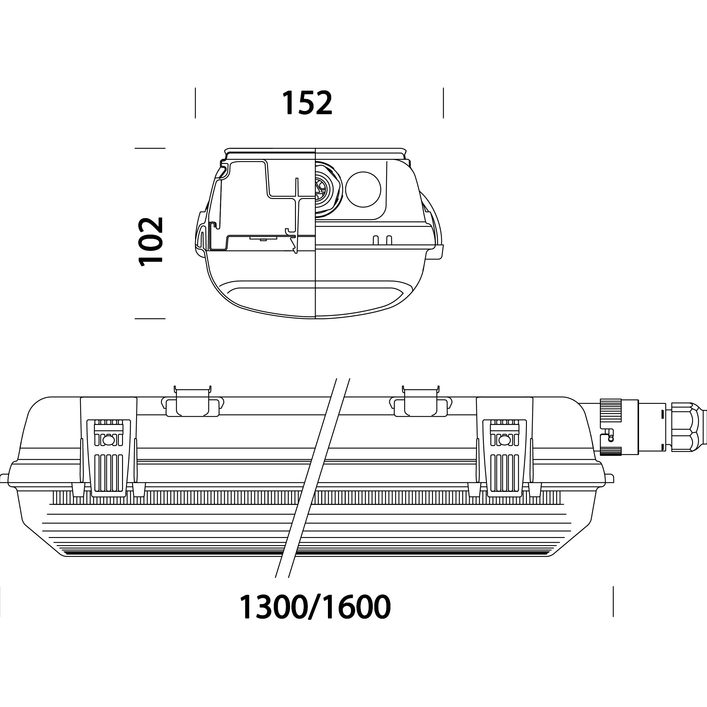 ECHO LED, les numéros un du secteur, sont les armatures étanches à LED qui bénéficient de toute l'expérience et de toute la qualité Disano. Les caractéristiques de base sont celles qui ont déjà fait le succès des armatures étanches Disano. La lampe présente un corps en polycarbonate incassable ou en acier, avec indice de protection IP66. Des nervures internes le rendent particulièrement solide. L'étrier en acier inox (version standard) facilite la pose dans le plafond, alors que le crochet à ressort assure une fixation rapide à toutes les chaînes de suspension. Une denture spéciale garantit un alignement parfait en cas d'armatures en ligne continue. Ces caractéristiques de base s'assortissent également des avantages de la technologie LED, c.-à-d. des sources de lumière qui durent très longtemps (80 000 h), consomment moins et émettent une lumière de première qualité. CORPS : moulé par injection, en polycarbonate gris RAL 7035, incassable, à résistance mécanique élevée grâce à sa structure renforcée avec des nervures internes.DIFFUSEUR : moulé par injection, en polycarbonate transparent, prismage interne pour un meilleur contrôle lumineux, auto-extinguible V2, stabilisé aux rayons UV. La finition lisse à l'extérieur facilite les opérations de nettoyage qui sont nécessaires pour maintenir toujours une efficacité lumineuse maximum.EQUIPEMENT : équipé de connecteur mâle.NORMES : ces appareils sont conformes aux normes EN 60598-1 CEI 34-21 en vigueur et ont l'indice de protection IP66IK08 des normes EN 60529.