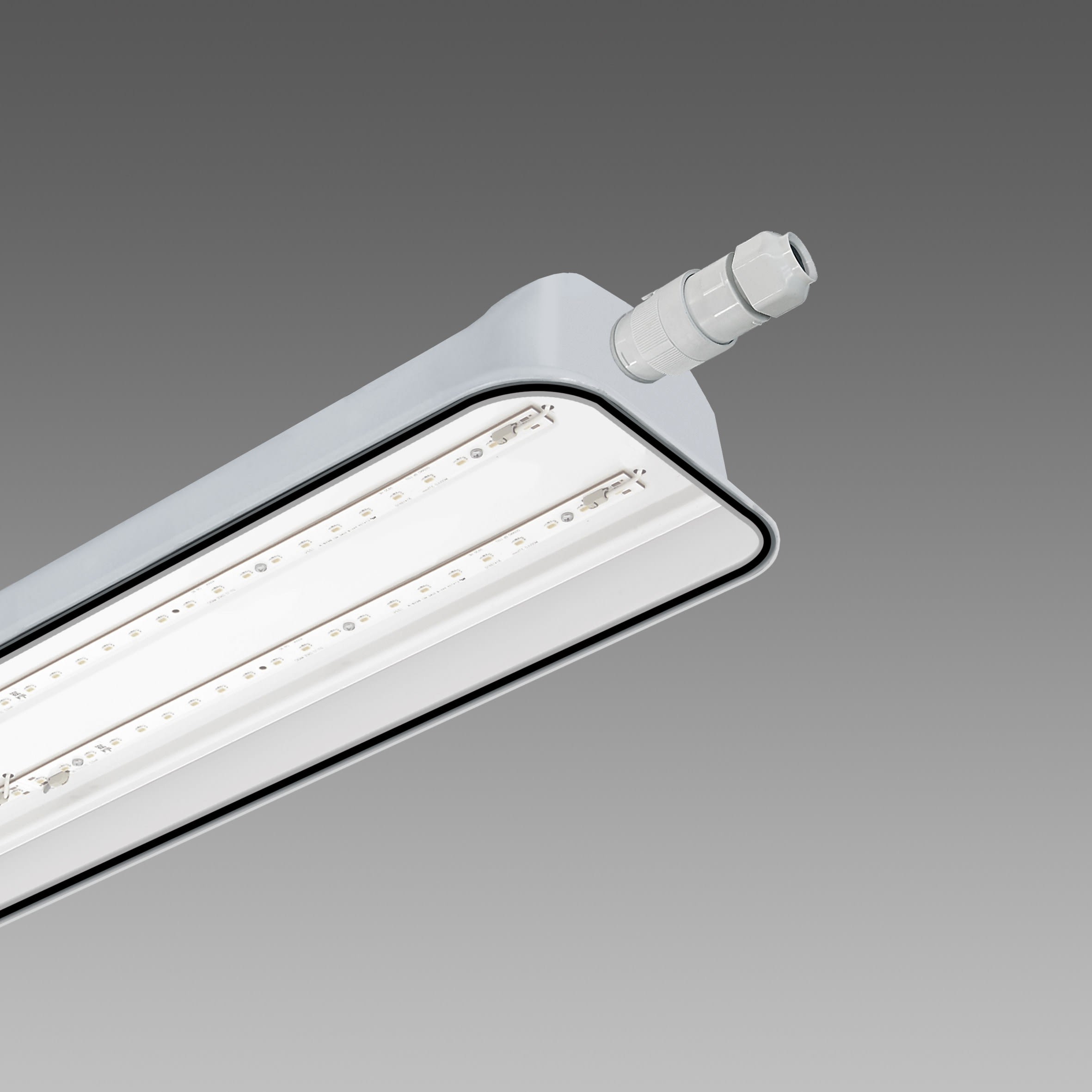 Le Forma est un étanche de haute qualité.Sa résistance est très importante.Son corps est en acier embouti monobloc à résistance mécanique élevée. Cadre en acier matricé, embouti dans un monobloc à résistance mécanique élevée.Les lentilles sont en PMMA haute performance, celles-ci résistent à haute température et au rayonnement UV, avec plusieurs distributions photométriques.Diffuseur : en verre trempé de 5 mm d'épaisseur, antichsoc.Peinture : pulvérisation avec peinture polyester couleur RAL 7035, résistant à la corrosion et aux brouillards salins.Équipement : joint en caoutchouc siliconique. Serre-câble en nylon f.v. Ø 1/2" gas (câble Ø 9 min et Ø 12 max). Système de fermeture en acier. Piton à tige filetée de série. Installable sur ligne art. 6000 à l'aide de l'acc. 6036.Normes : appareils conformes aux normes EN60598-1 CEI 34-21 en vigueur et présentant un niveau de protection IP65IK08 selon les normes EN 60529.Le luminaire remplit les critères exigés par les référentiels IFS et BRC, démarche hsACCP, pour les systèmes d'éclairage dans les industries alimentaires.Dans tous les cas, vérifier avec les designers et avec le service conseil de Disano la compatibilité entre le matériau et les aliments dans toutes les industries comportant un système de nettoyage et lavage.En version LED ou non LED.